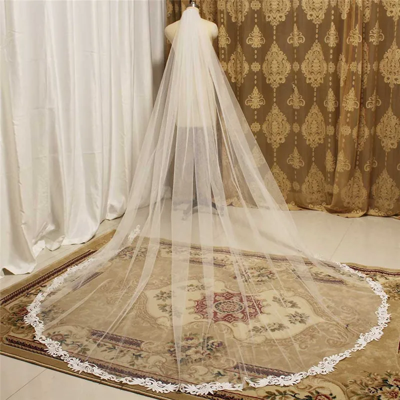 Новая кружевная Длинная свадебная вуаль, однослойная свадебная вуал...