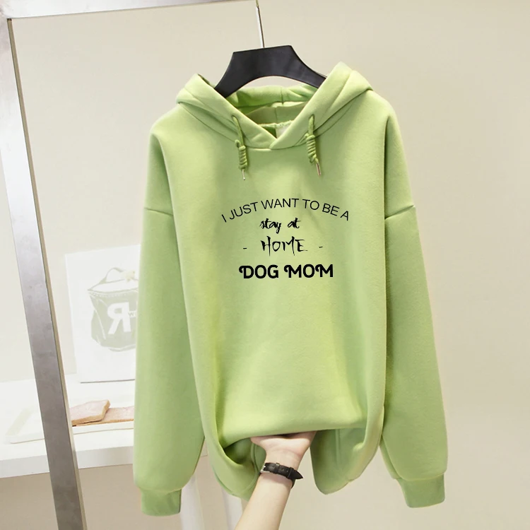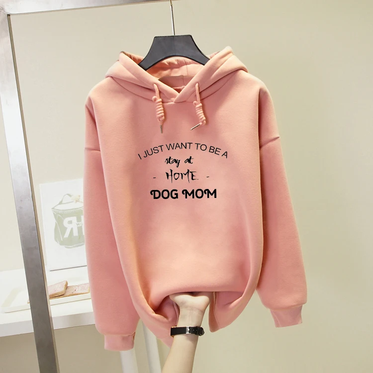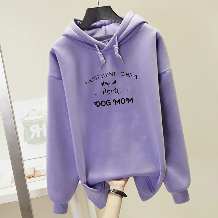С надписью I Just Want To Be A сидеть дома собаки мама Письмо печати Женская толстовка с капюшоном и длинными рукавами, в стиле Харадзюку размера плюс для женщин пуловер оверсайз