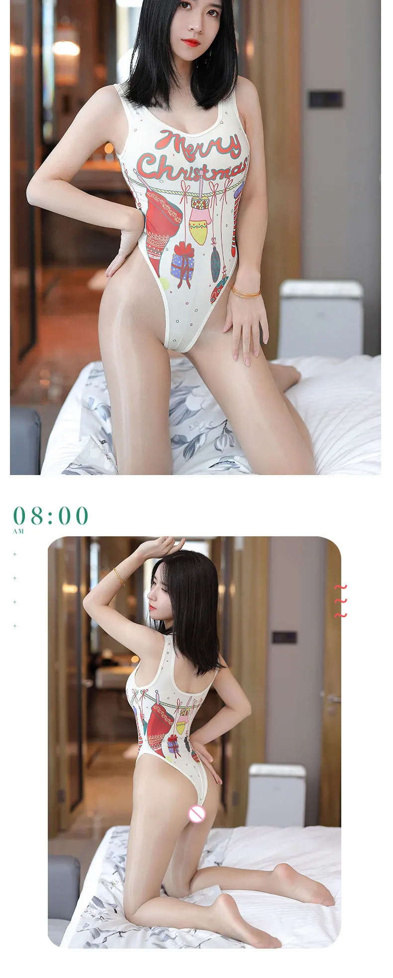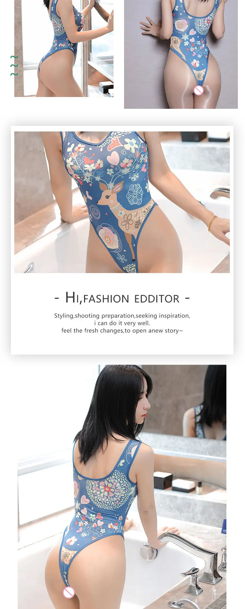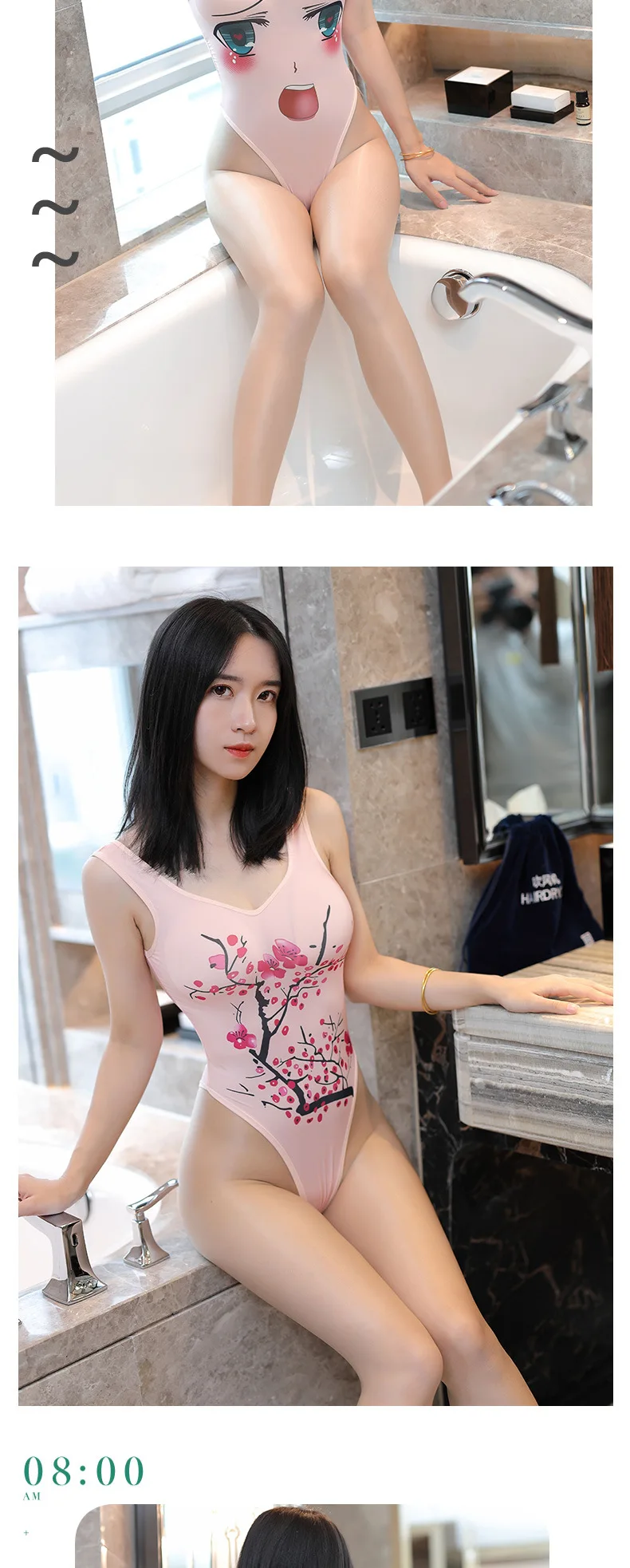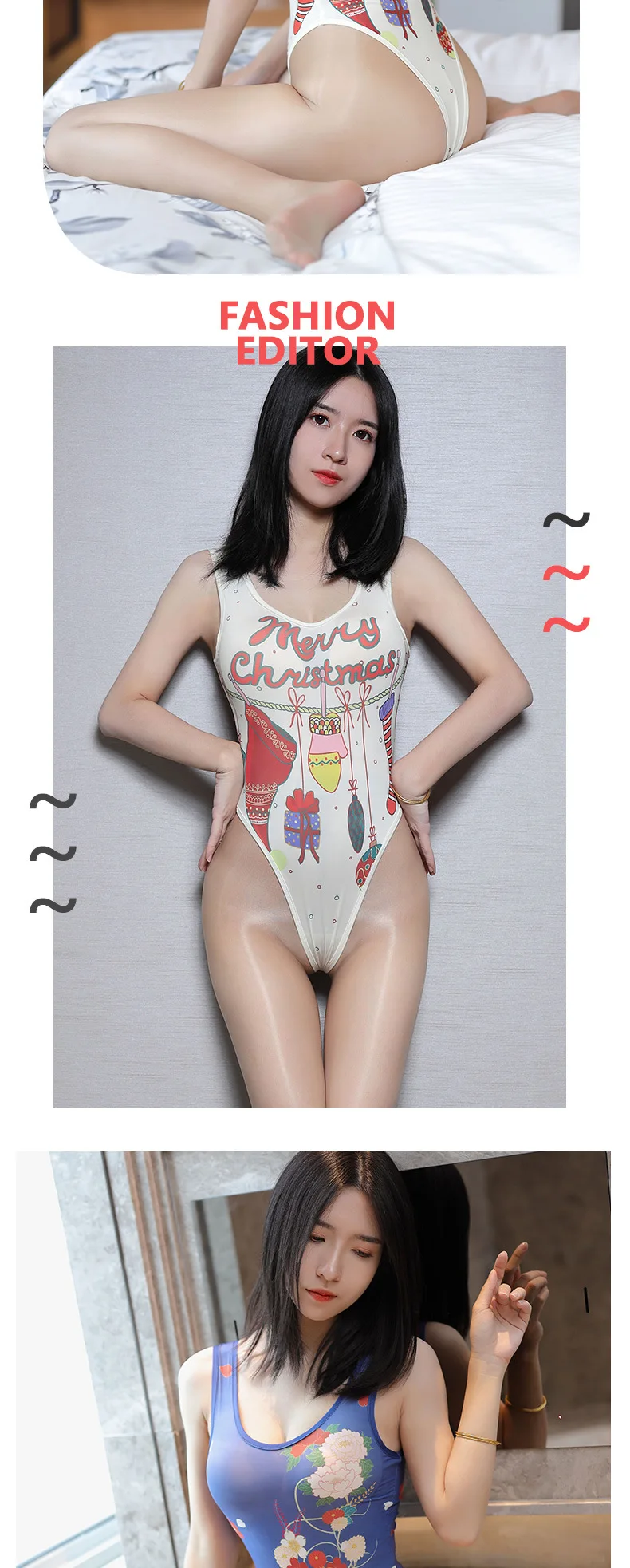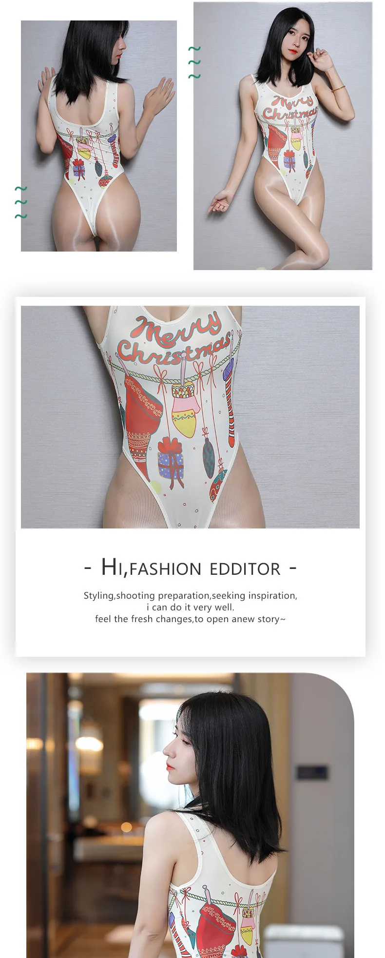 Сексуальный блестящий японский купальник с рождественским принтом, боди с высоким вырезом, слитный купальник с цветочным камуфляжным принтом и открытой спиной, купальник с Т-образным вырезом, F15