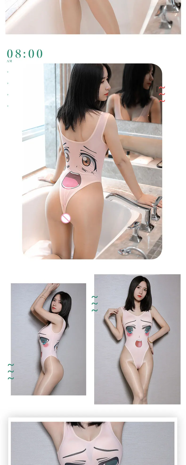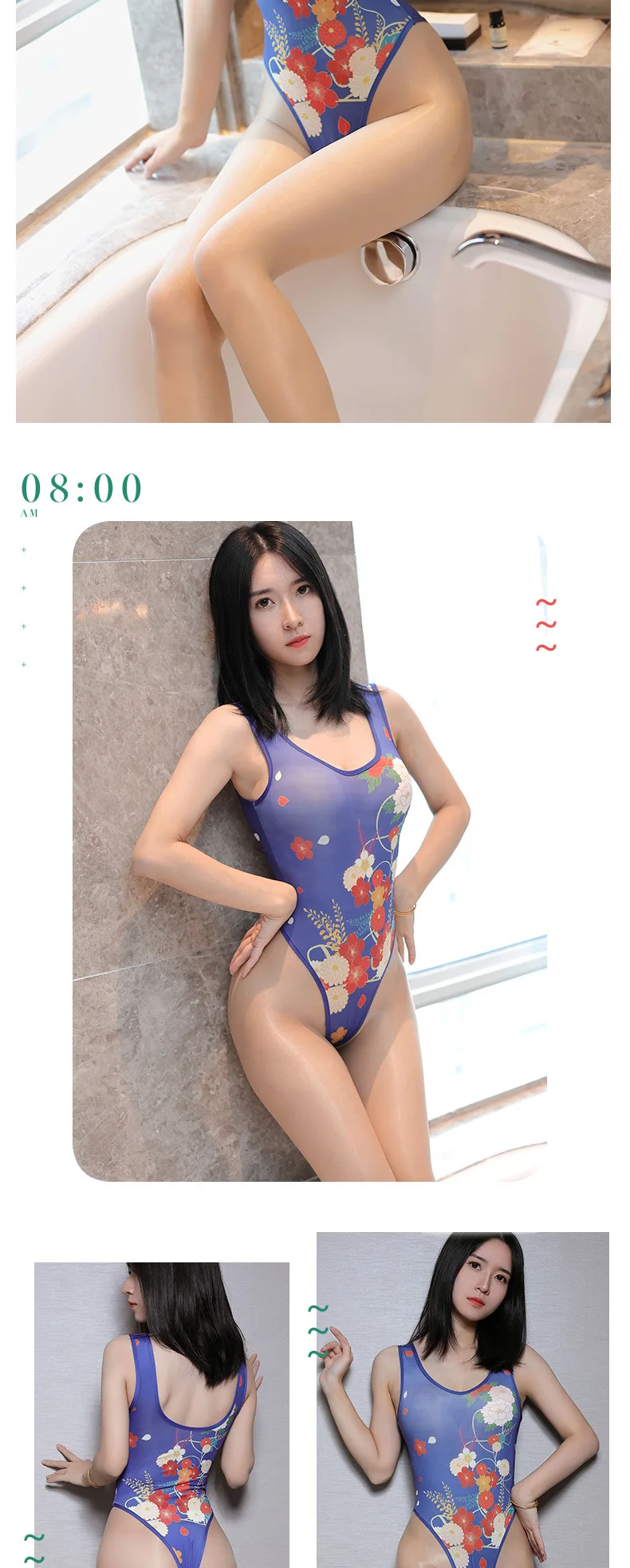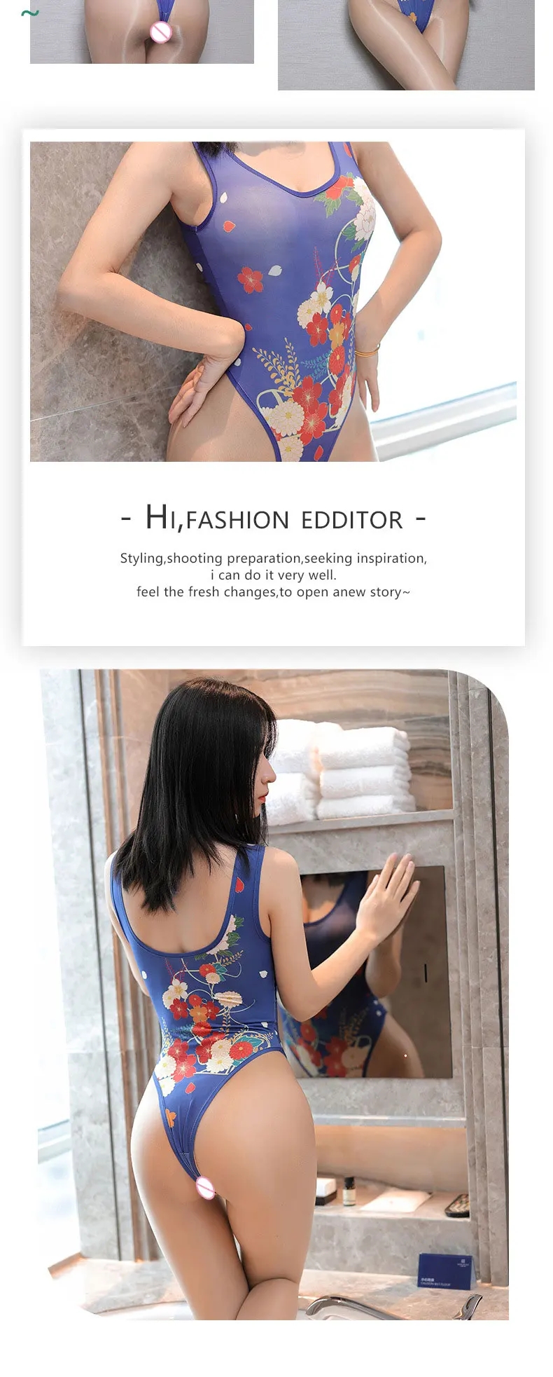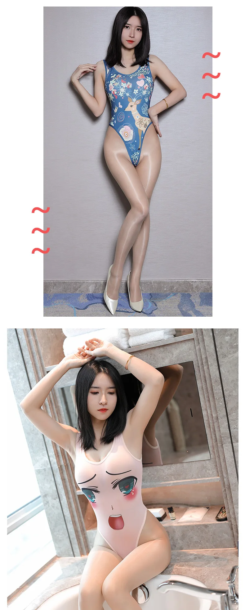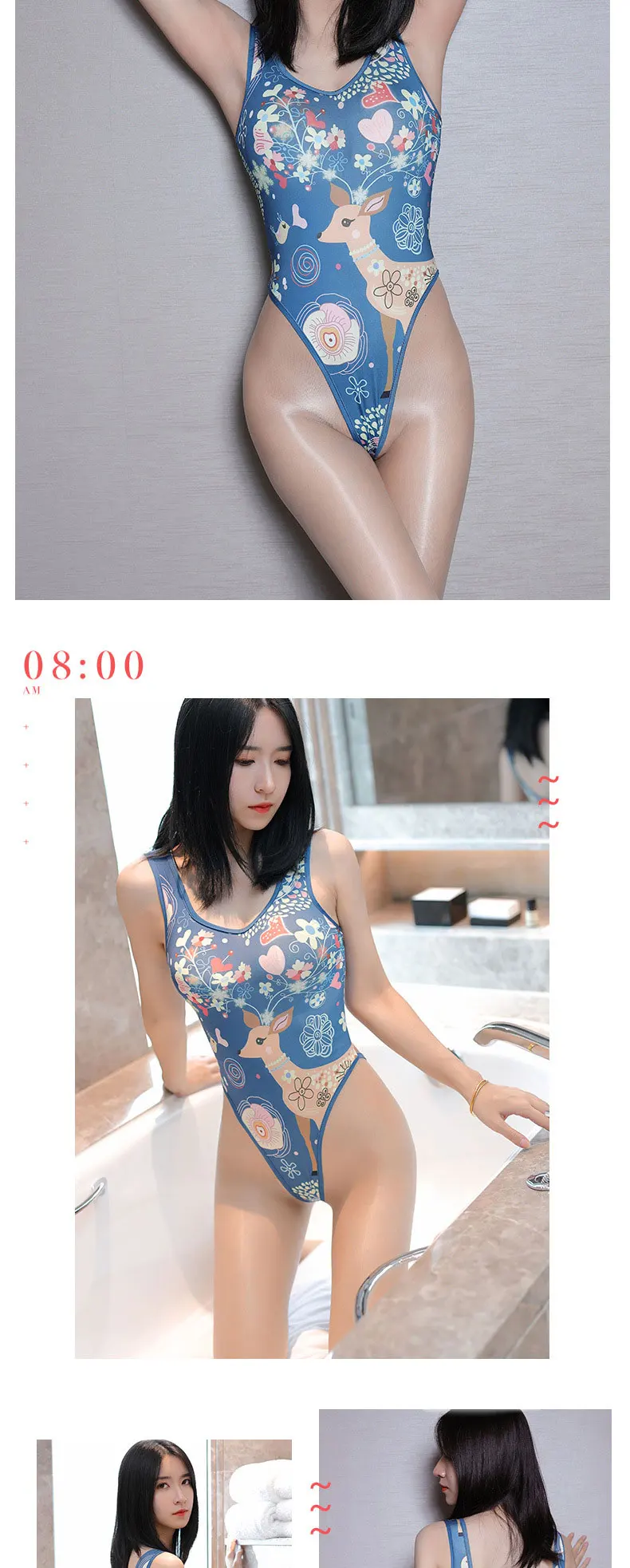 Сексуальный блестящий японский купальник с рождественским принтом, боди с высоким вырезом, слитный купальник с цветочным камуфляжным принтом и открытой спиной, купальник с Т-образным вырезом, F15