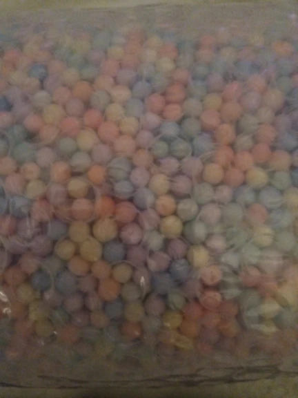 Брала самый большой по граммам, пришло действительно много в пакетике, для упаковки одного подарка с среднюю коробку 30*30 вполне хватит. Шарики не очень яркие. Посылка пришла довольно быстро за три недели в СПб