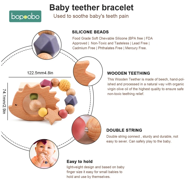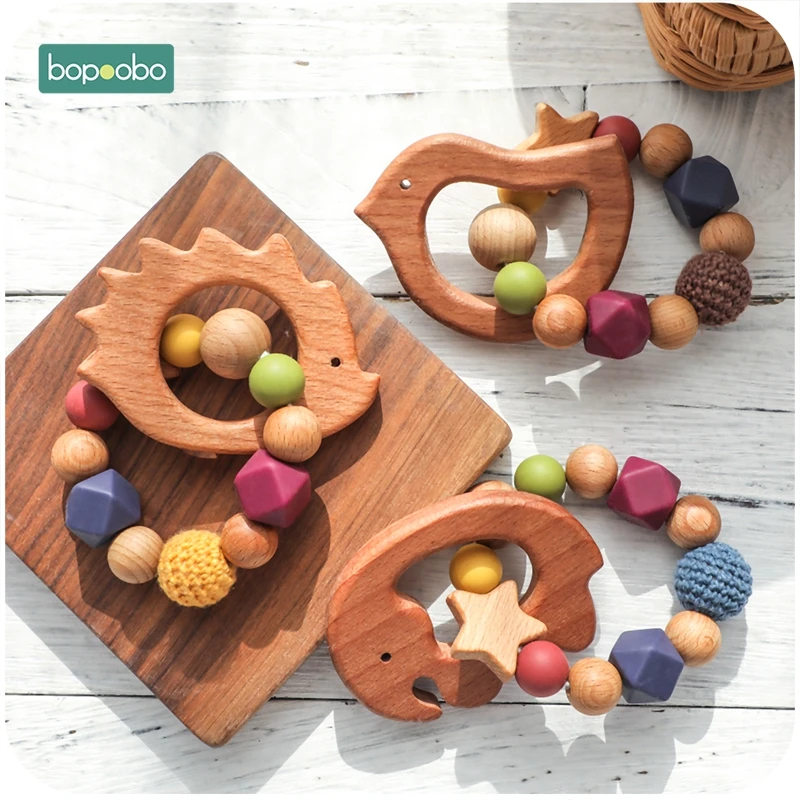 Bopoobo, 1 шт., Детские Прорезыватели, силиконовые бусины, деревянн...