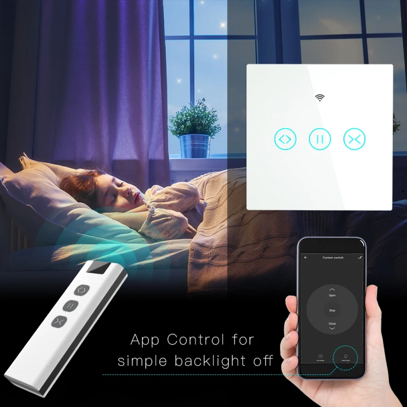 1.RF + WiFi сенсорный панельный занавес переключатель: с мощным функциональным умным переключателем занавеса, мы легко можем превратить наш дом в умный. Разумно Управляйте нашим занавесом гораздо проще и умнее. Пульт дистанционного управления RF и ручное управление вашим занавесом s опционально. Что еще более важно, один пульт дистанционного управления Группа умных выключателей для штор. Кроме того, он может работать с интеллектуальным мотором Занавески или рольставни для реализации автоматизации для всех штор s дома. Просто добавьте моторизованные оттенки или другие аналогичные устройства в ваш умный дом с умным карнизом! (Примечание: карниз не входит в посылка.)