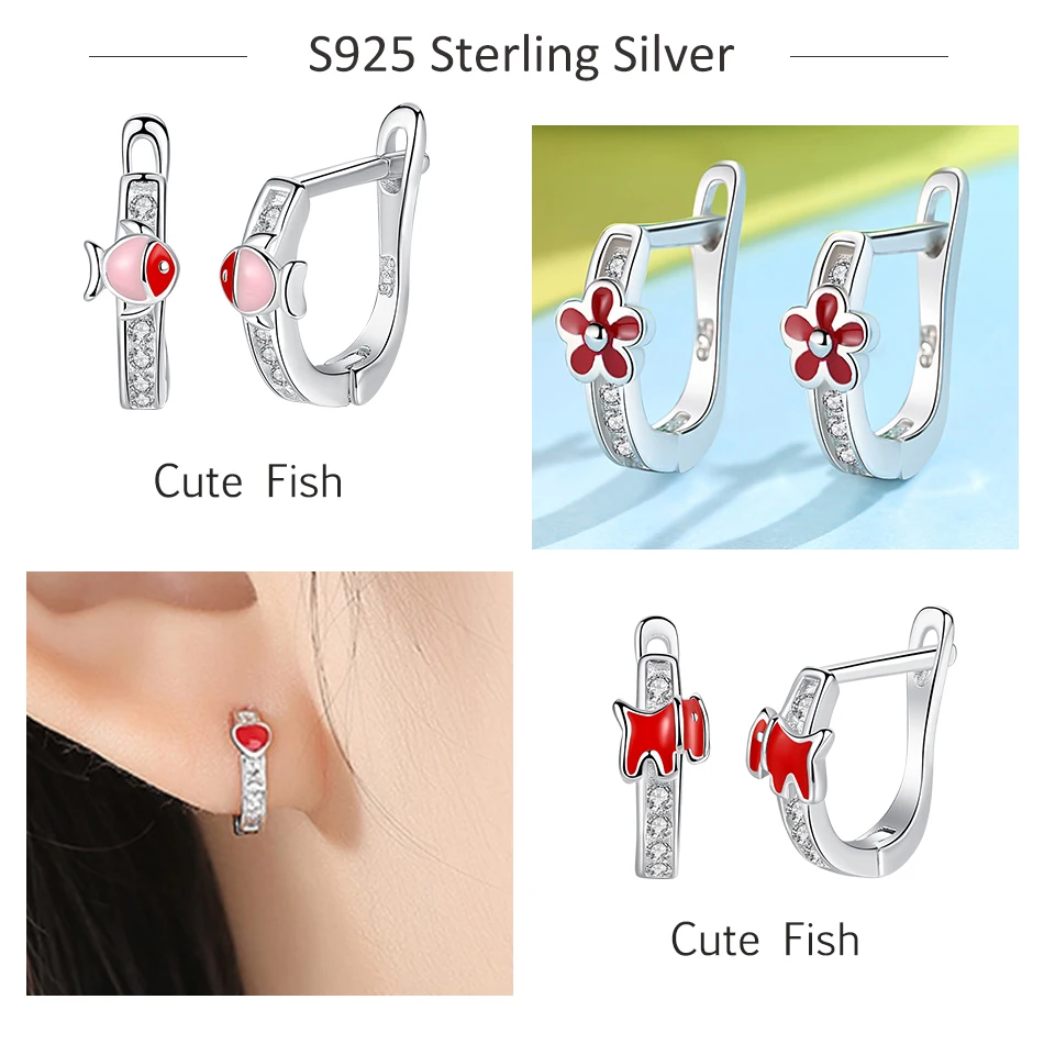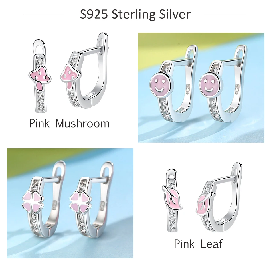 Детские серьги-кольца ELESHE, серьги из серебра 925 пробы с красным и розовым цветком клевера, циркониевые серьги с цветочным мотивом, ювелирные изделия для девочек и детей
