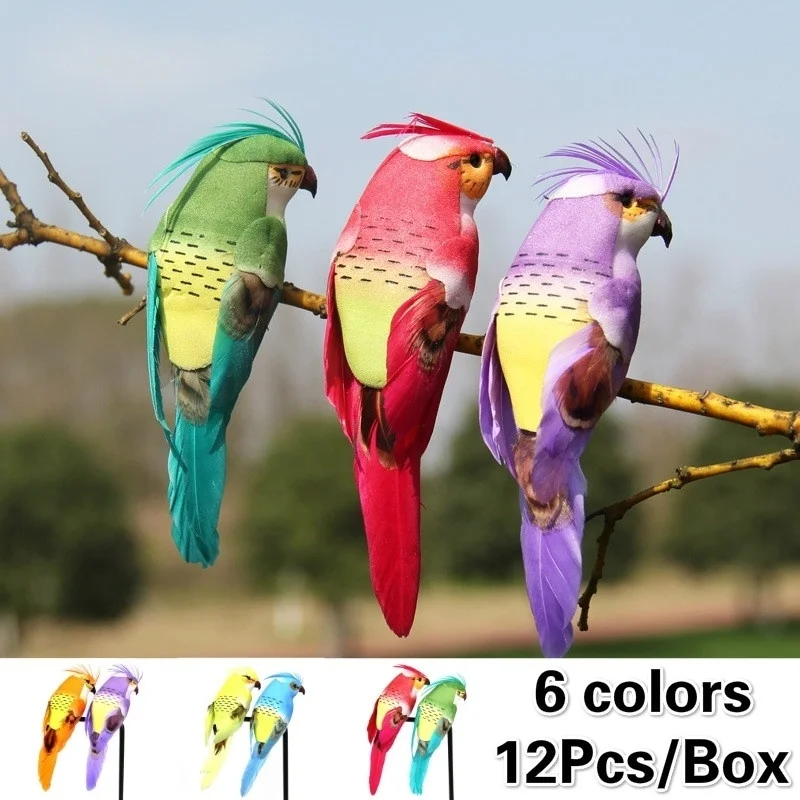 12 шт.кор. Моделирование Птица Попугай дома торговый центр место Украшения Опора подвесные украшения сада led лампа птица