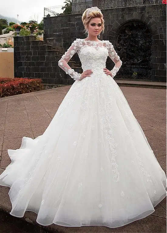 Женское свадебное платье с кружевной аппликацией, длинным рукавом