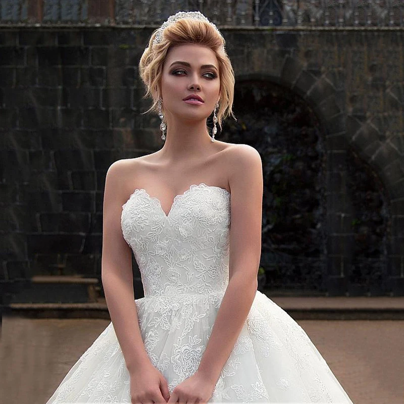 Роскошное бальное платье принцессы, кружевное свадебное платье неве...