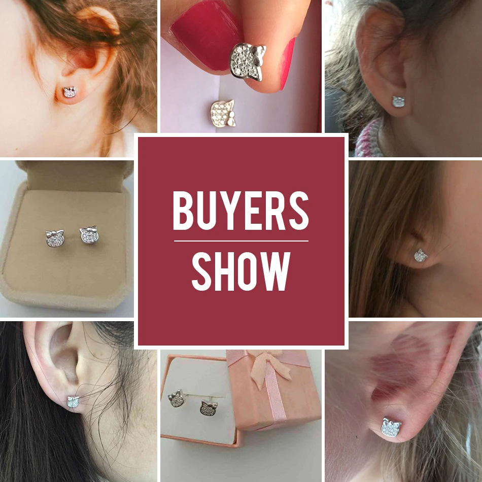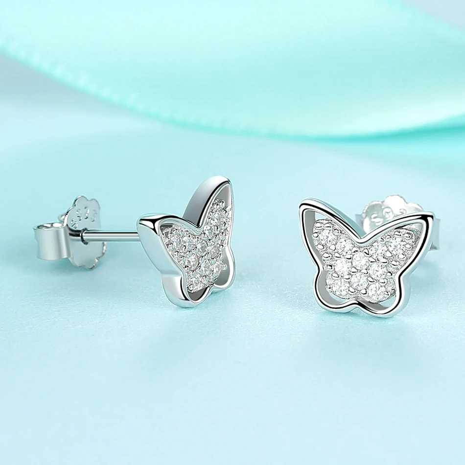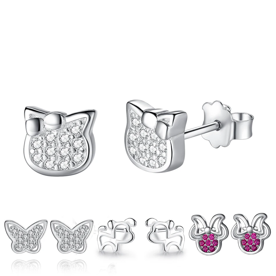 ELESHE Аутентичные 925 стерлингового серебра серьги-гвоздики с открытыми пальцами и кристальной бабочкой кошек и собак маленькие серьги для женщин и детей, модное ювелирное изделие в подарок
