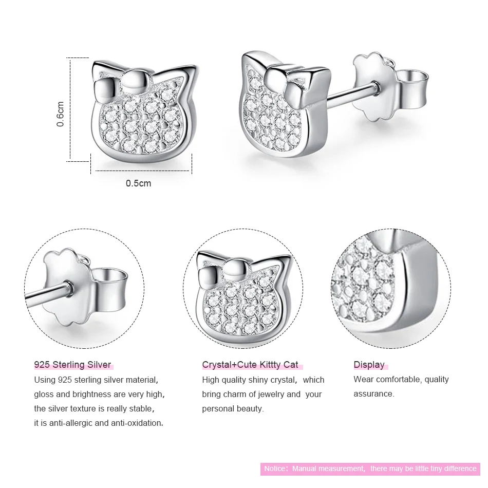 Женские серьги-гвоздики с котом BELAWANG, маленькие серьги из сереб...