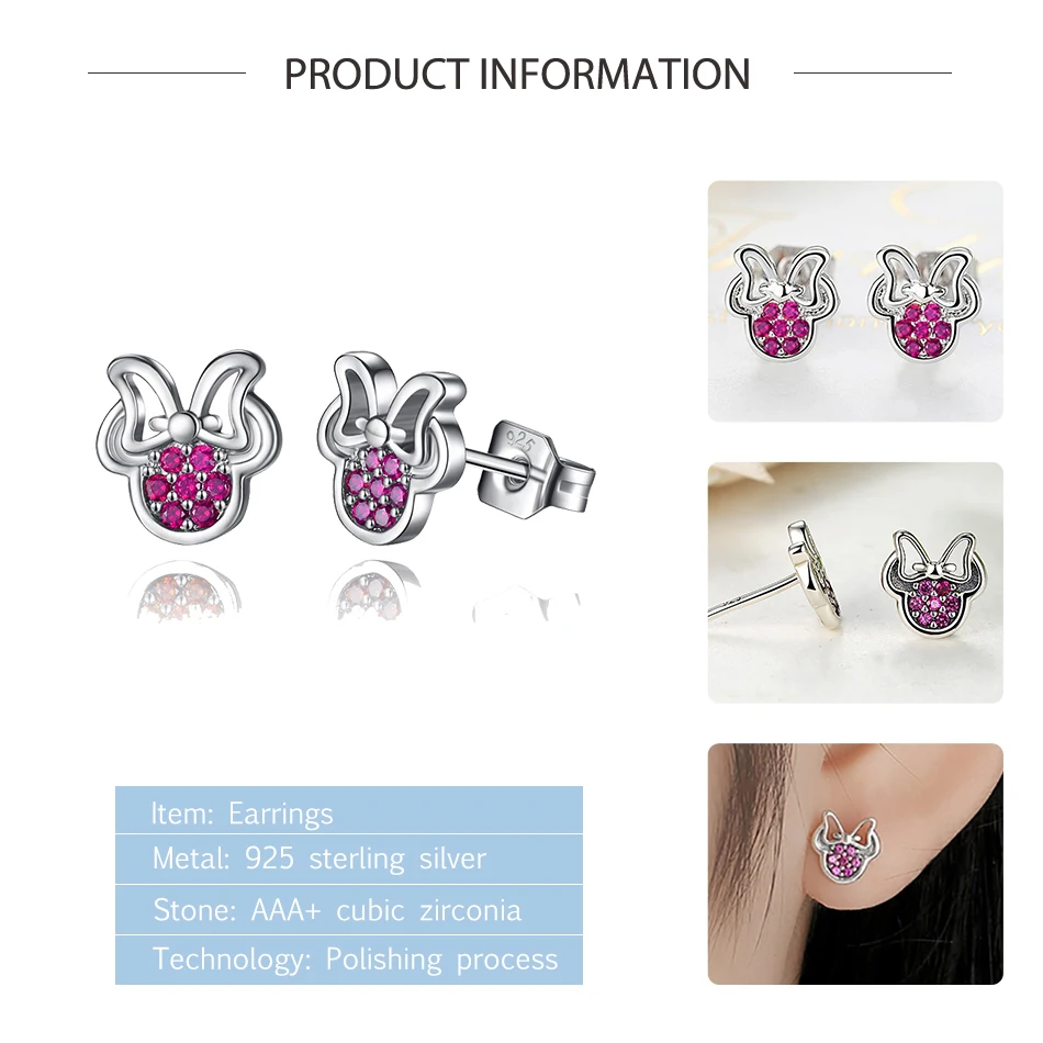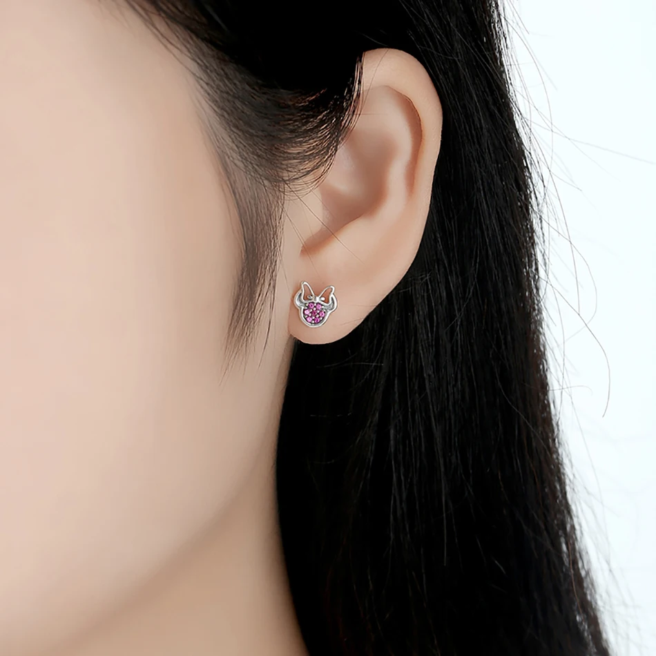 Реальные 925 стерлингового серебра Минни серьги-гвоздики для девоче...