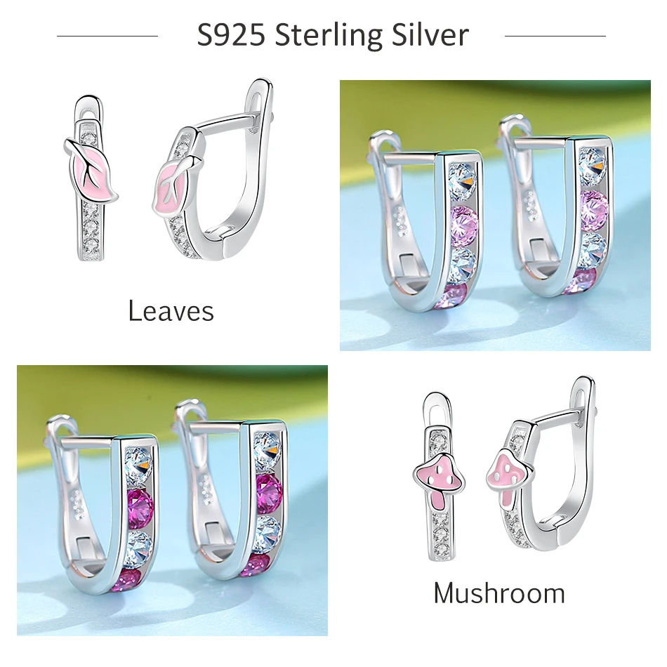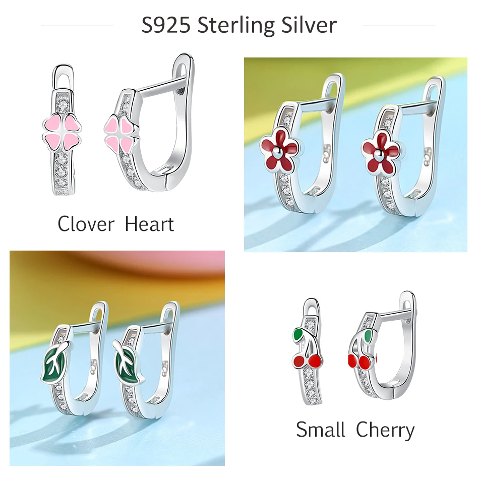 Серьги-гвоздики ELESHE детские из стерлингового серебра 925 пробы с эмалью розового и красного цвета, с декором клевер, сердце, цветок, кристалл, ювелирные изделия для девочек