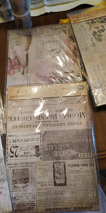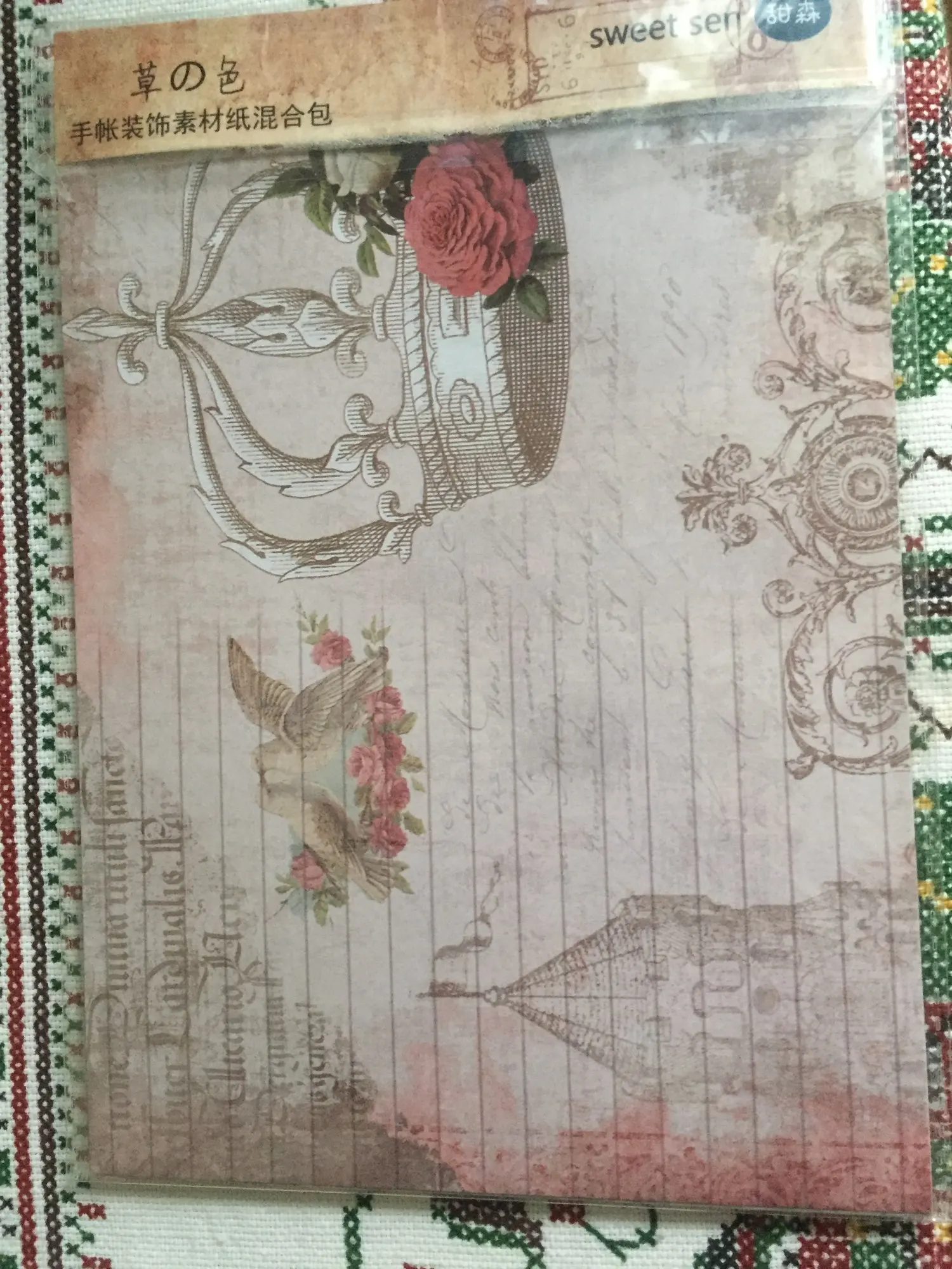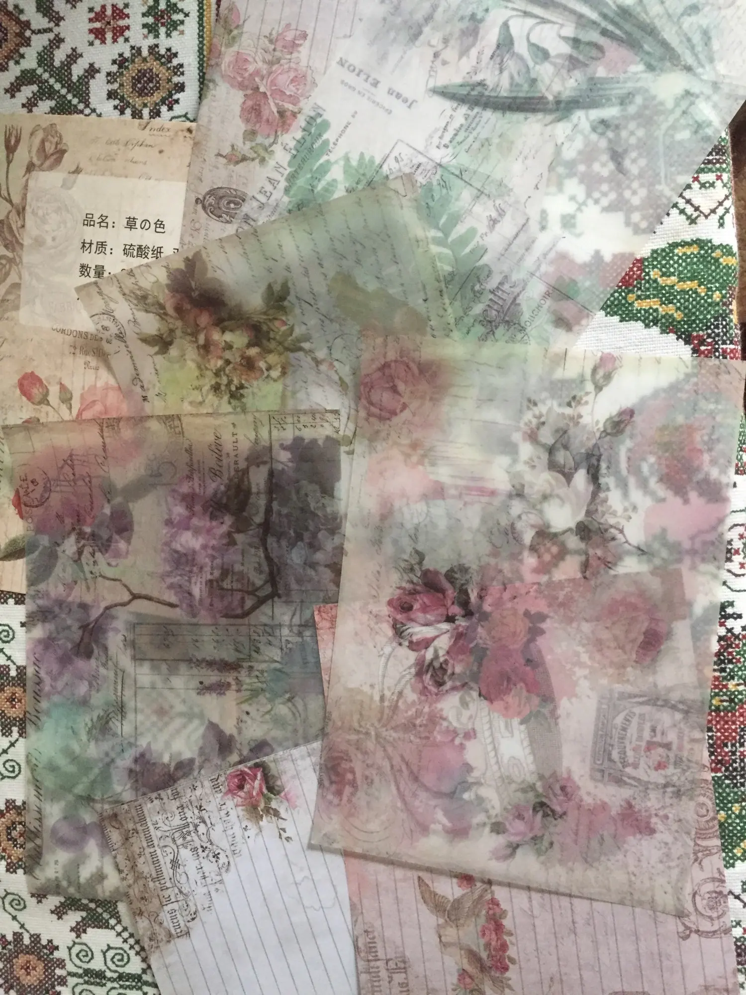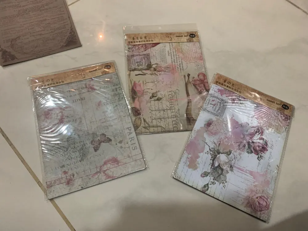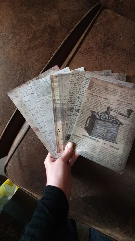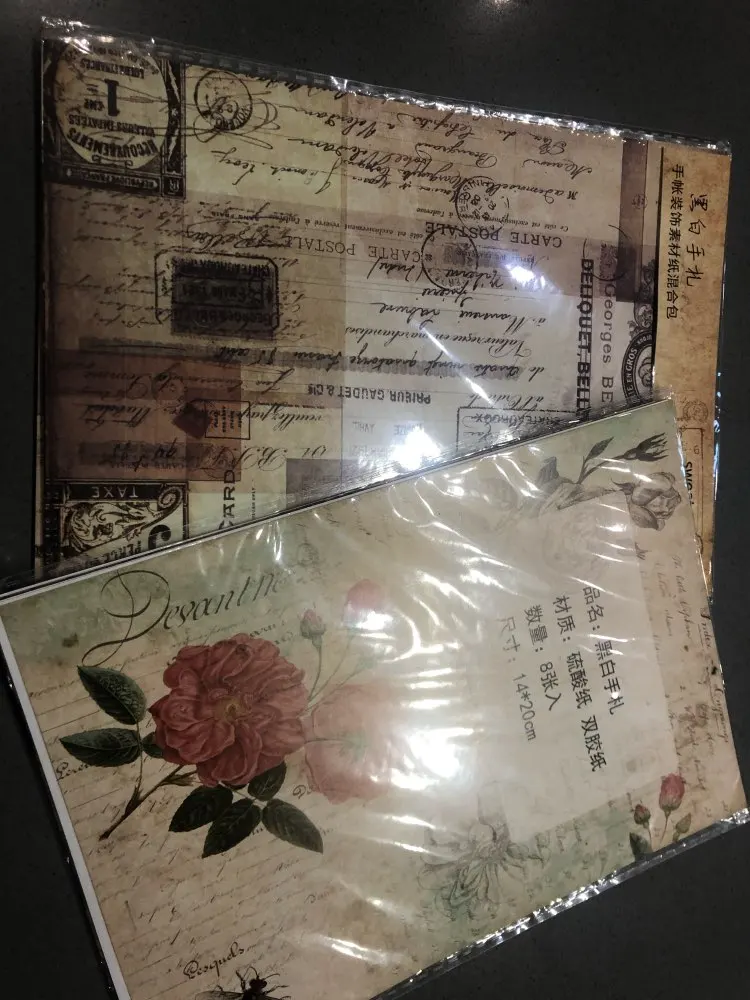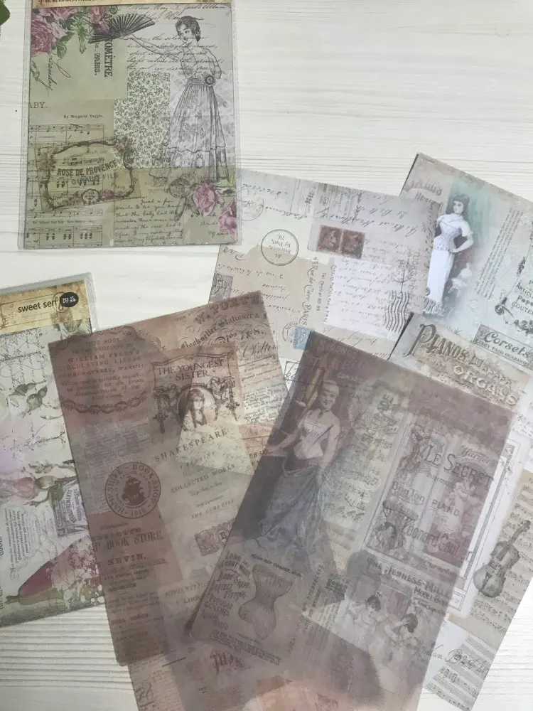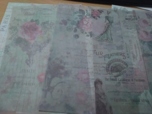 бумага тонкая, но красивая, 4 листа кальки+4 листа винтаж, рекомендую продавца, пришло все быстро