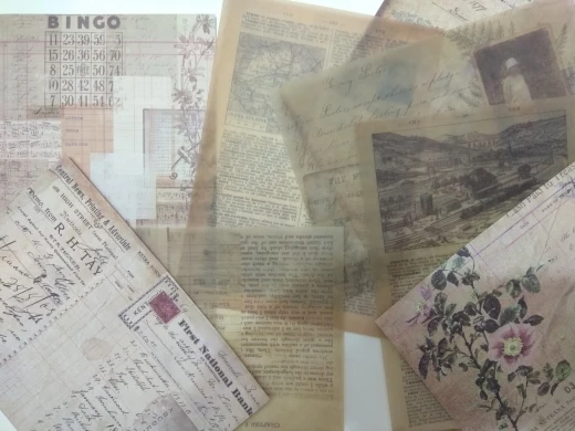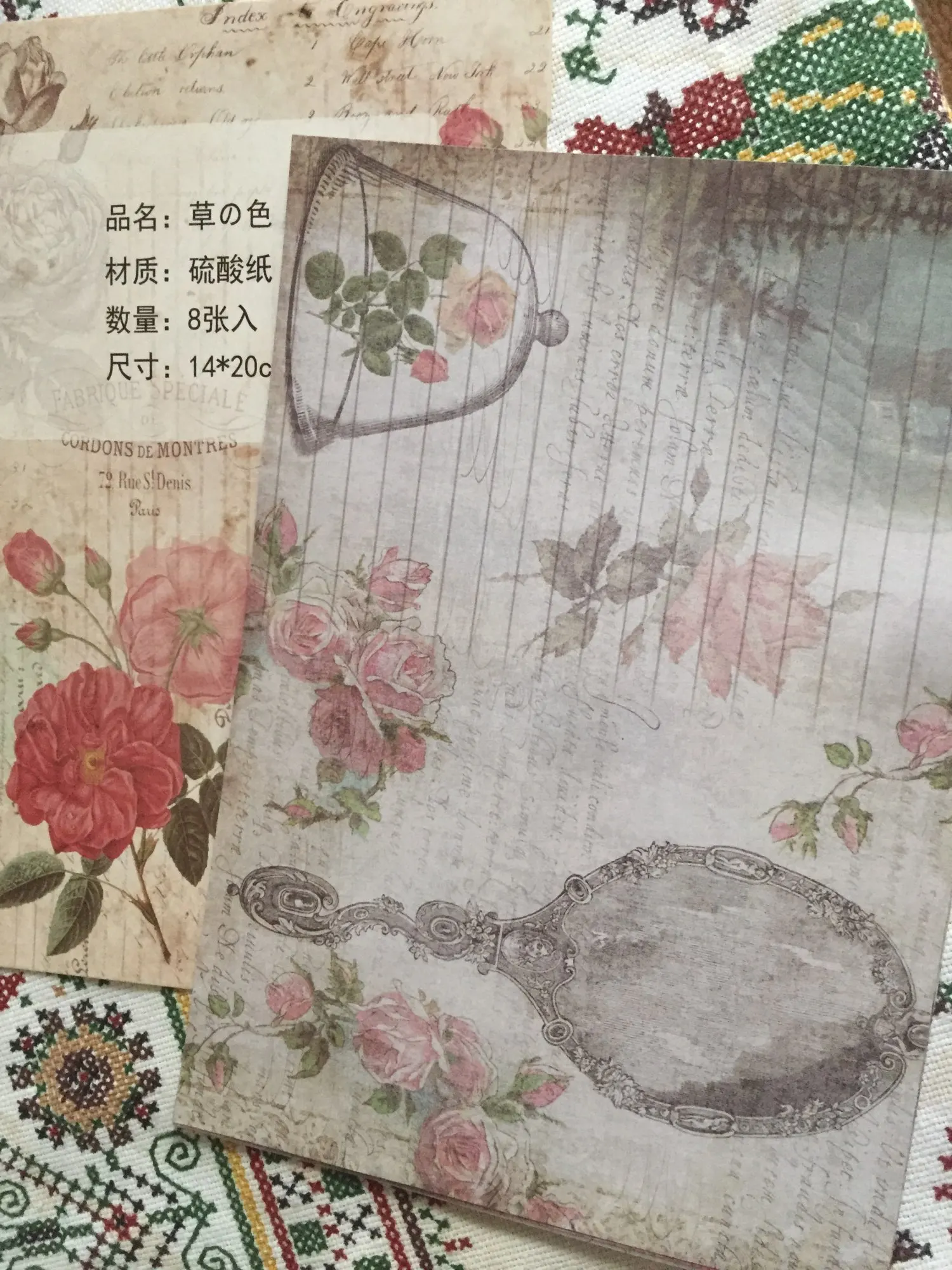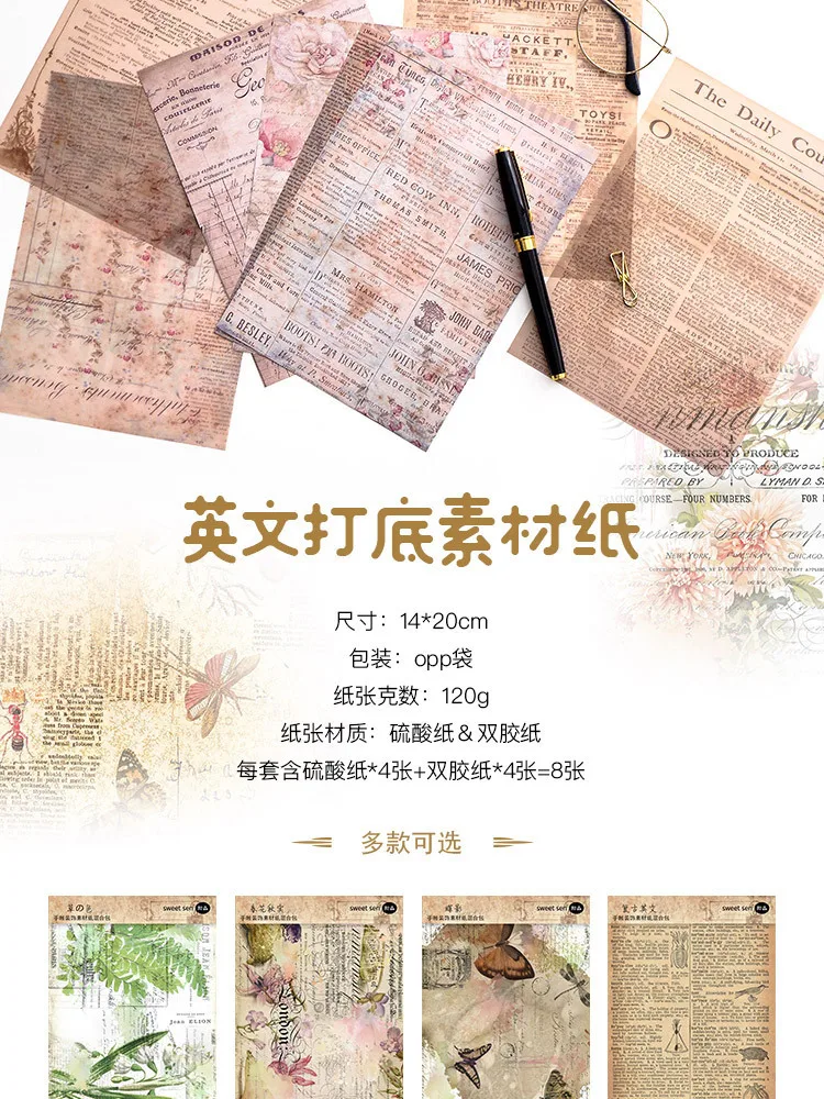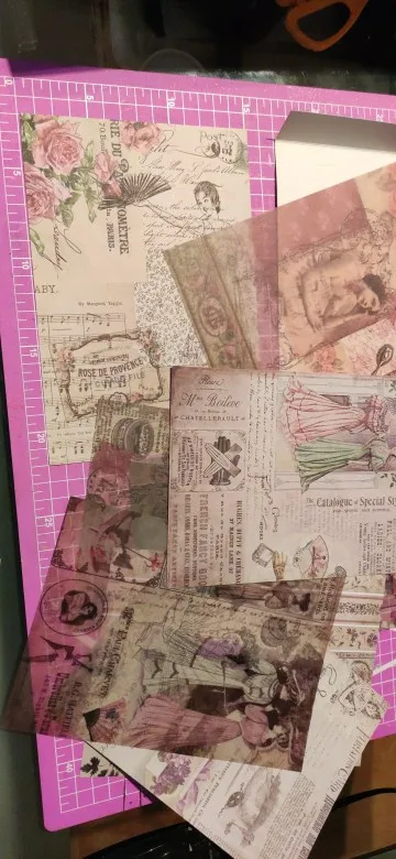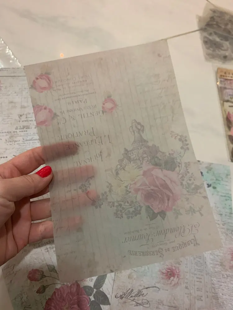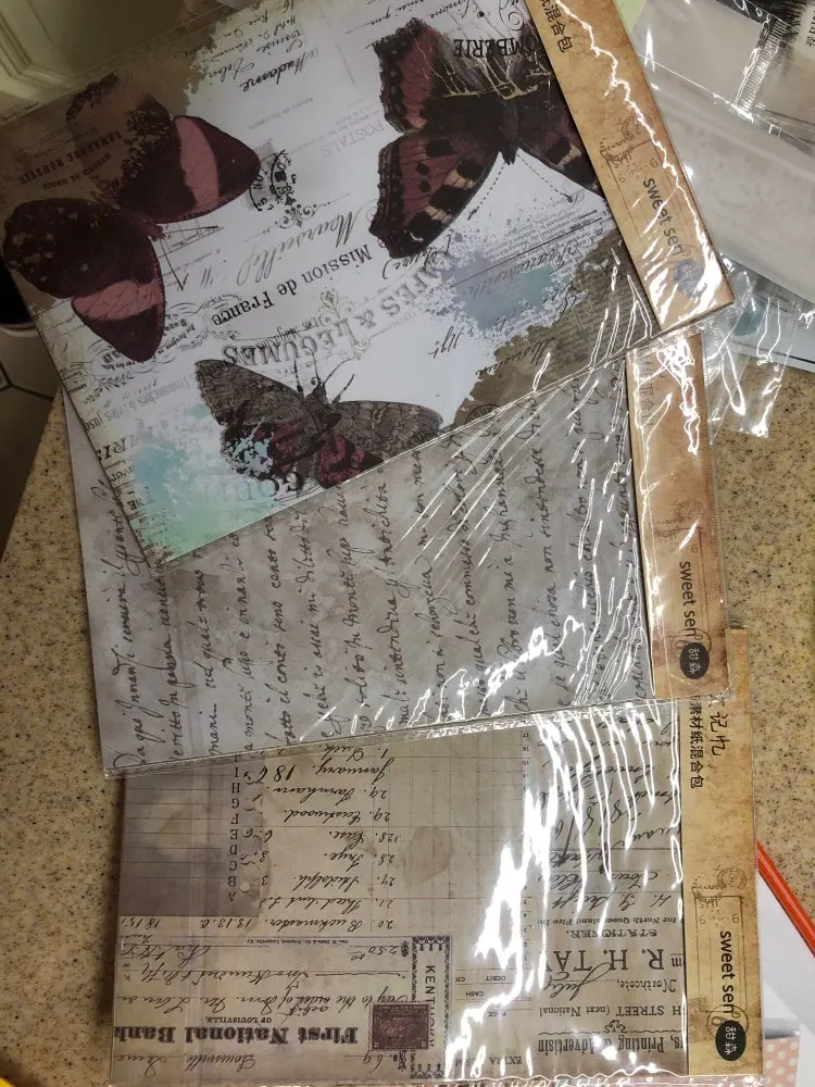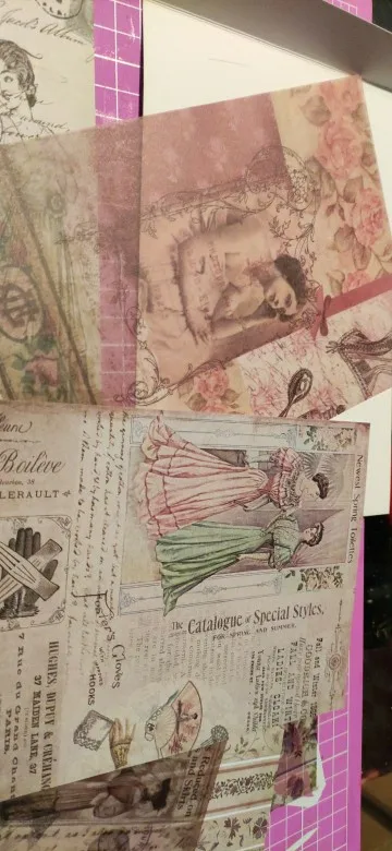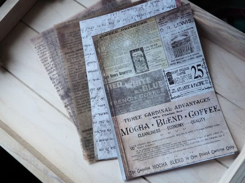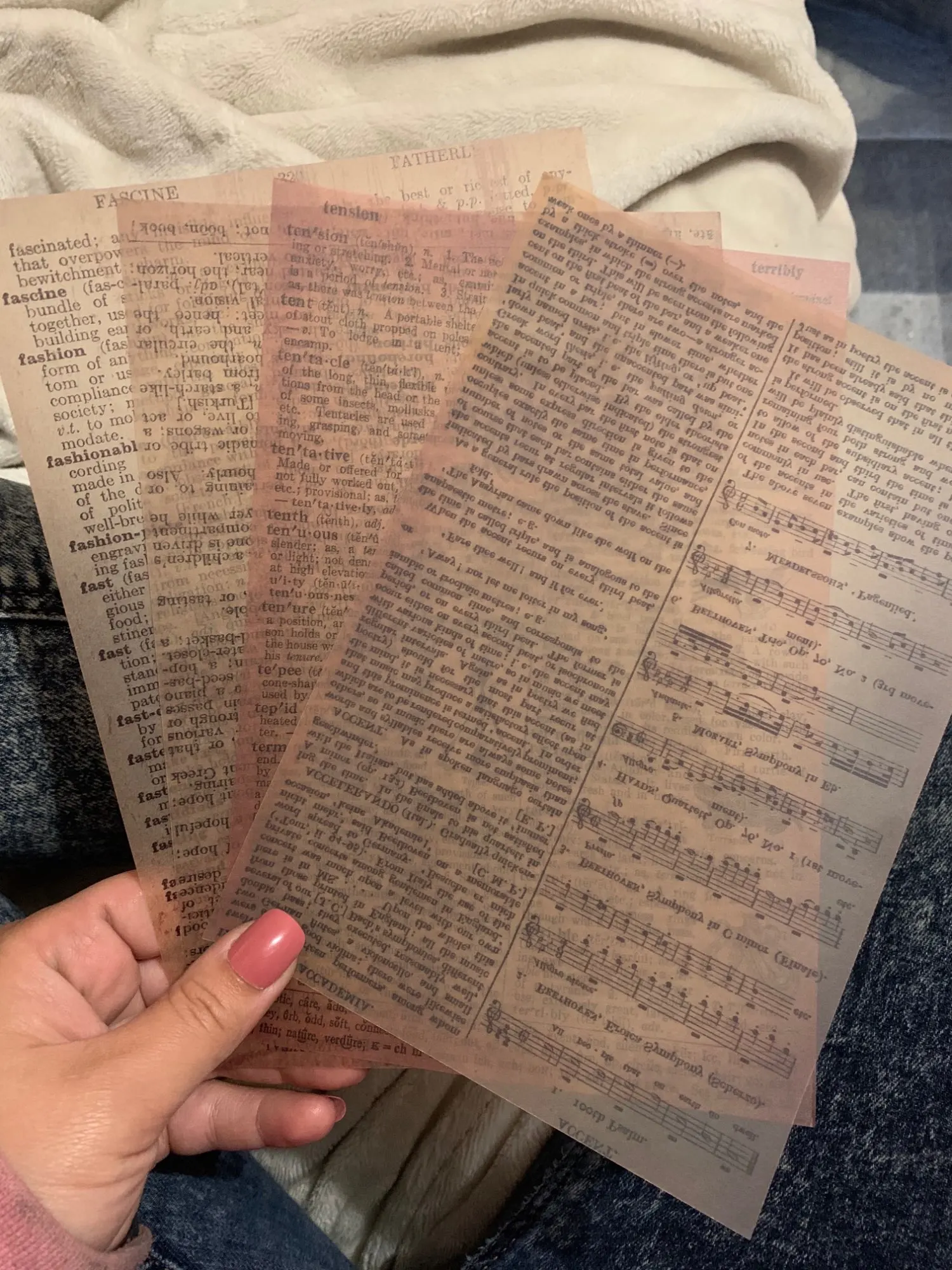 бумага тонкая, но красивая, 4 листа кальки+4 листа винтаж, рекомендую продавца, пришло все быстро