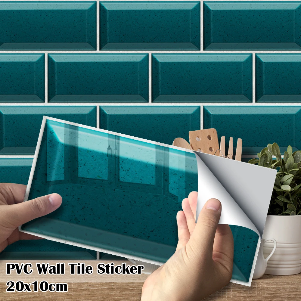 9 шт., черные длинные кирпичные самоклеящиеся наклейки из ПВХ для кухни, ванной комнаты, водостойкие бирюзовые самоклеящиеся клейкие плитки украшения стен