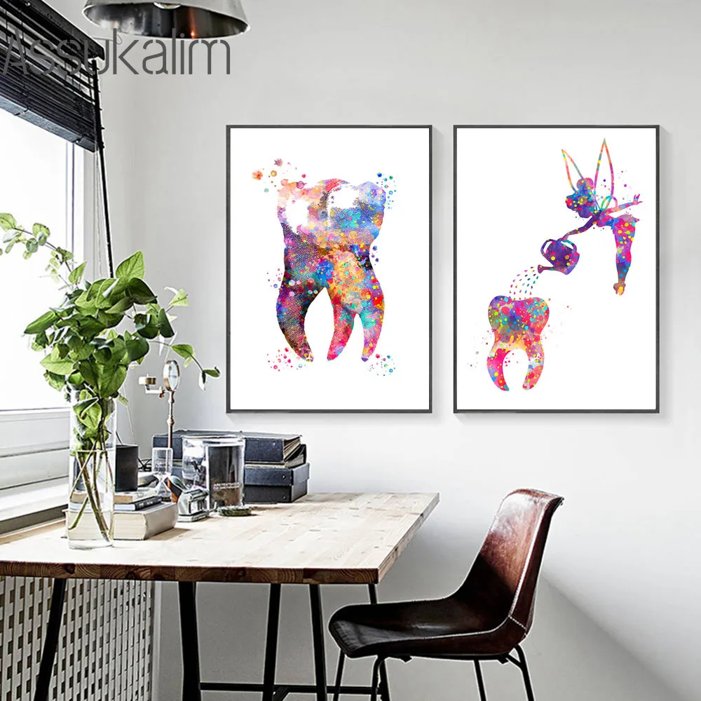 Зубной художественный принт, стоматологическая Картина на холсте, м...