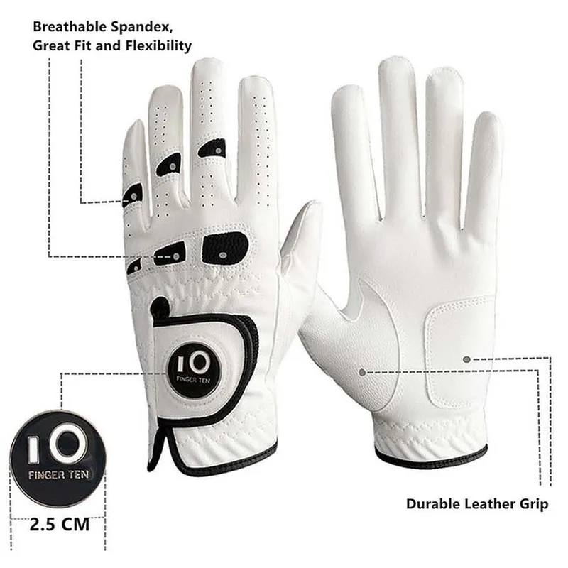 Качественный материал и гибкий дизайн: задняя часть изготовлена из прочной синтетической кожи и стратегически помещается в пальцы из лайкры и спандекса для гибкости и воздухопроницаемости в ключевых областях; маркер Подходит для логотипа, чтобы удобно снимать и снимать; Цвет: белый Размер: S, M, ML, L, XL Посылка включает в себя: 2 упаковки/4 упаковки мужских перчаток для гольфа с шариковым маркером