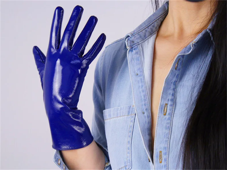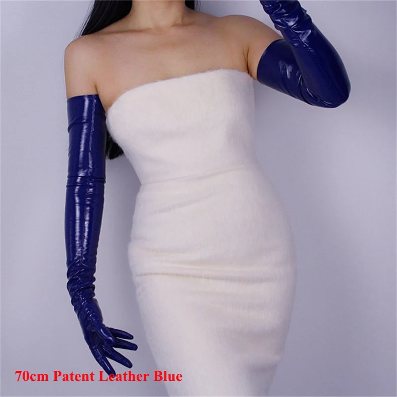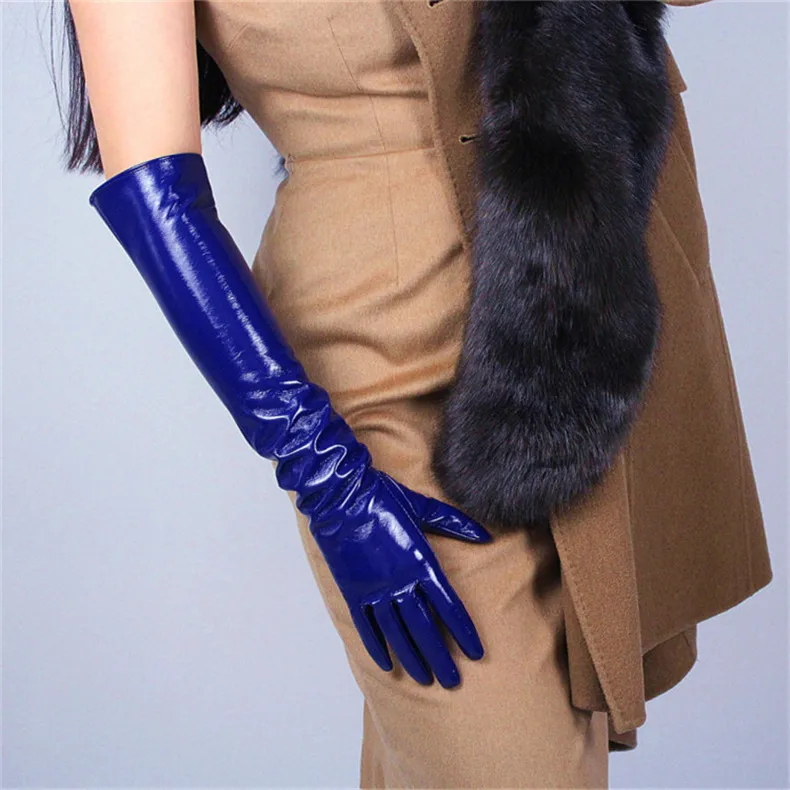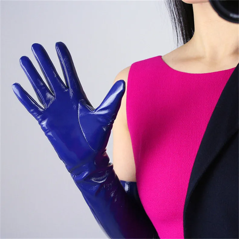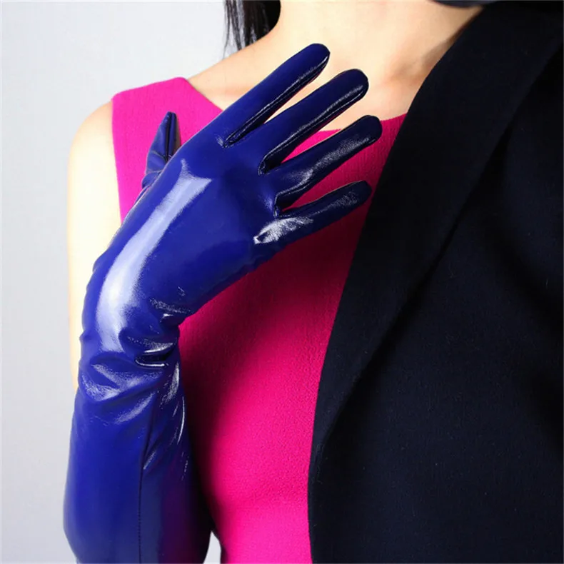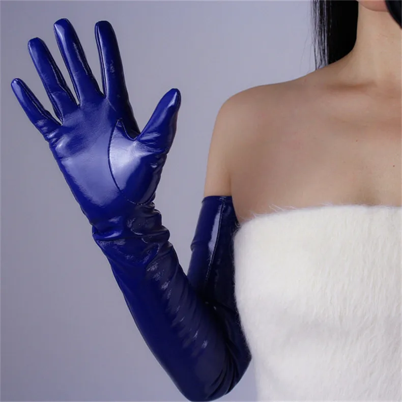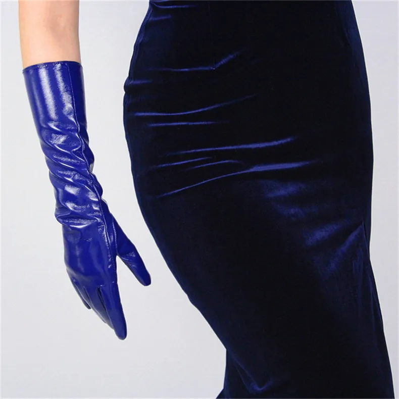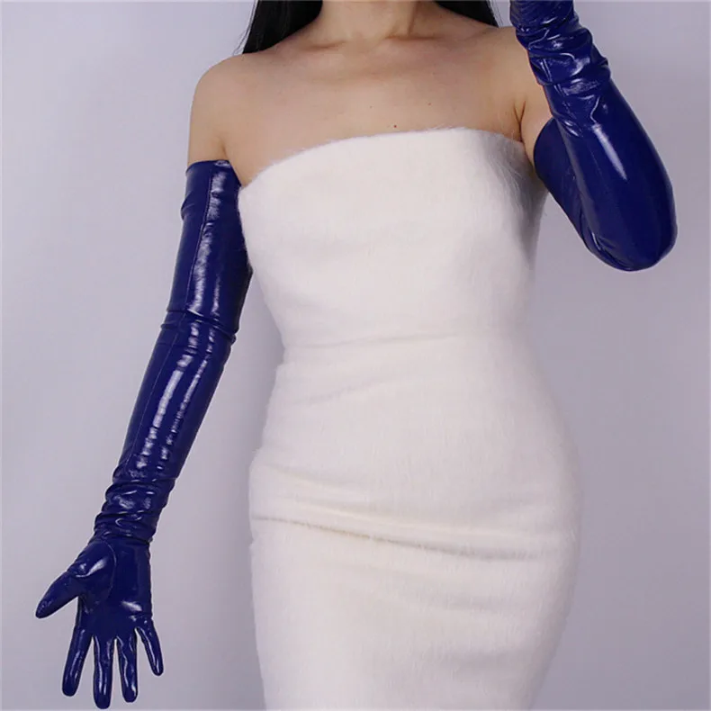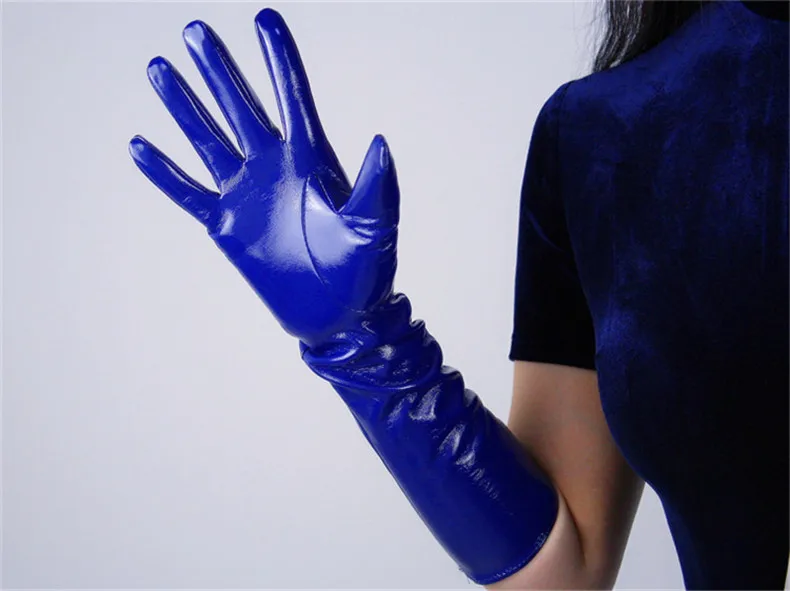 Лакированные кожаные длинные перчатки длиной 50 см, искусственная кожа, зеркальные, ярко-синие, темно-синие женские PU30