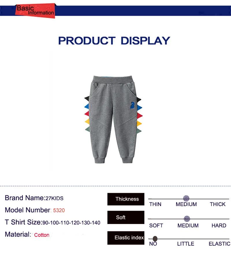 27kids Дети Мультфильм Мальчики брюки Весна Осень Животных Динозавр...