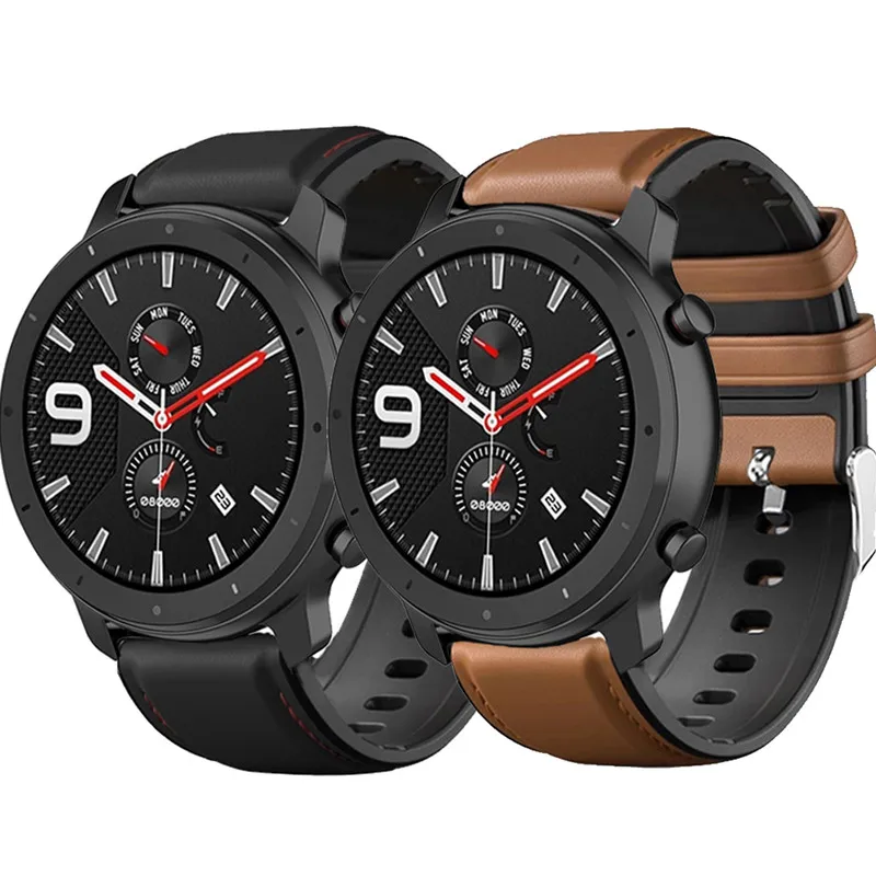 Ремешок для часов Amazfit GTR 47 мм, кожаный и силиконовый браслет ...