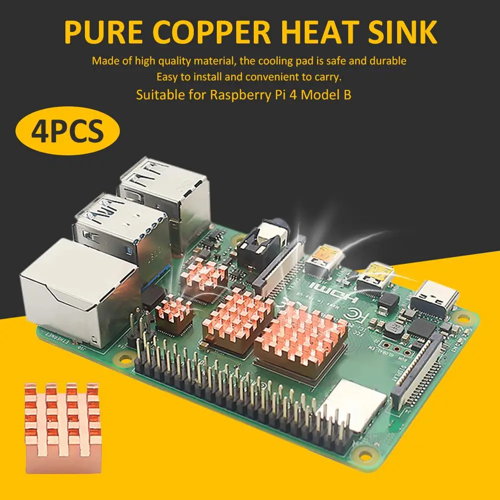 Радиатор из чистой меди, 4 шт., для Raspberry Pi 4, Модель B, 1G, 2...