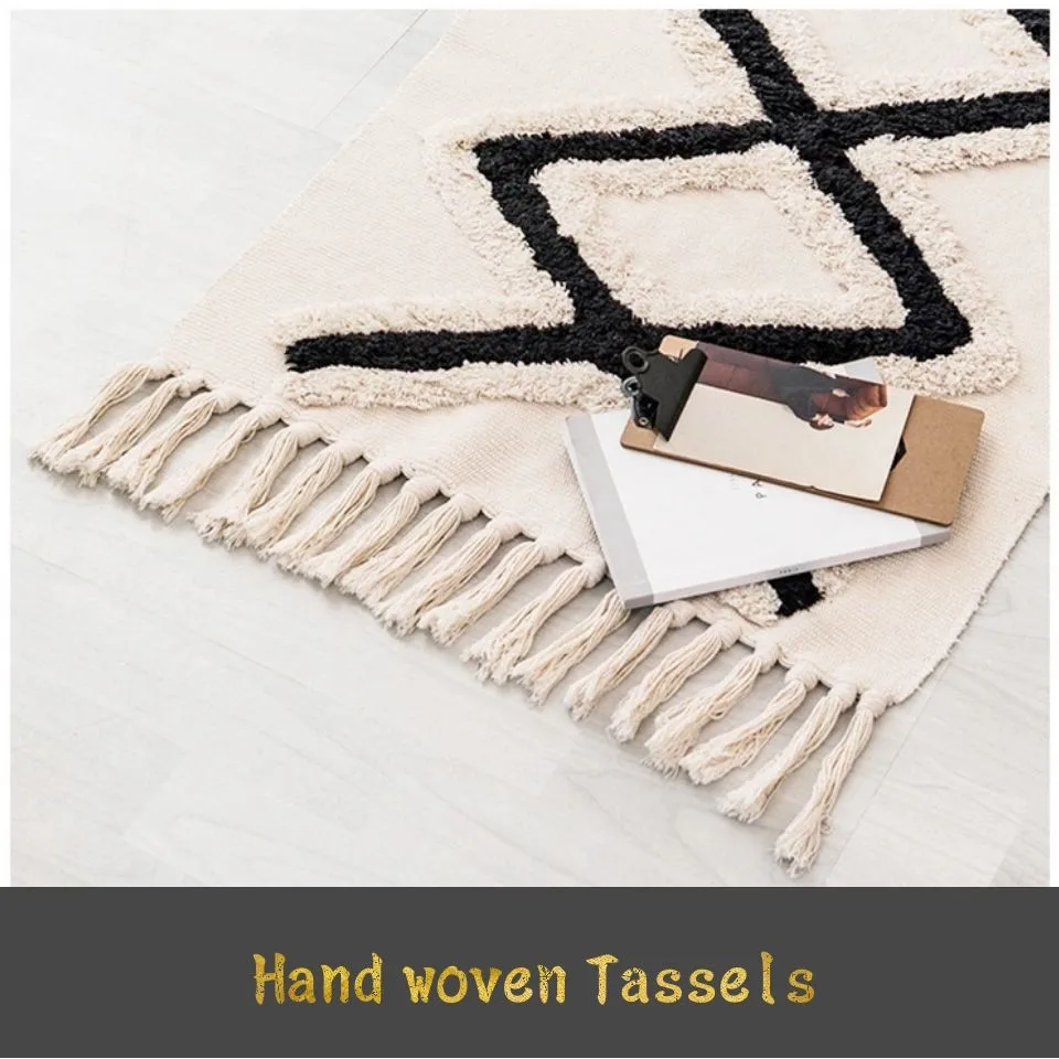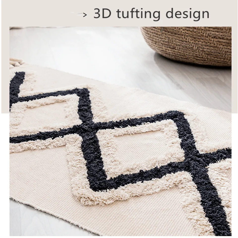 NameBlack White Carpet Cotton Linen Geometric Rug