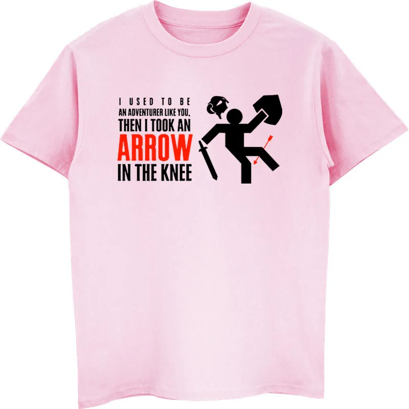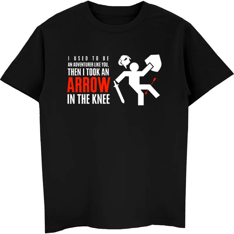 Мужские футболки Skyrim с надписью Стрела в колене, Мужская футболка с круглым вырезом и коротким рукавом, футболки в стиле хип-хоп, топы в стиле Харадзюку, уличная одежда