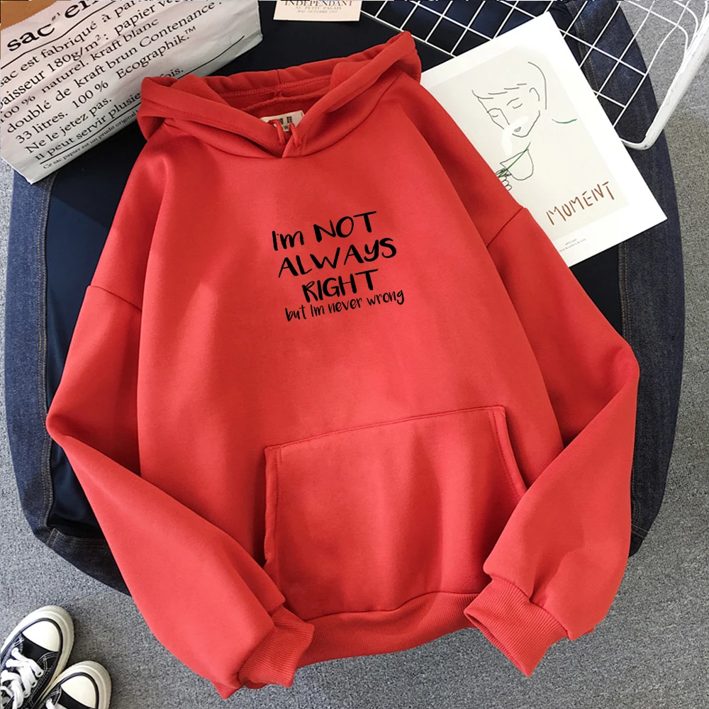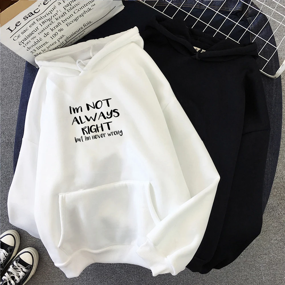 2019 зимние толстовки в стиле Харадзюку, свитшоты, женское розовое пальто с капюшоном и надписью I'm Not Always Be Right и надписью I'm Never Bad