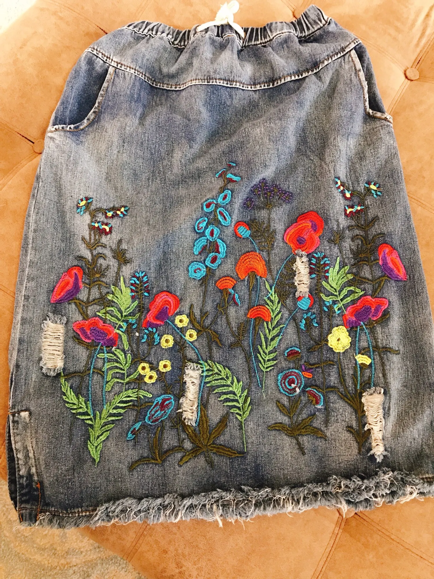Прибыл вовремя (3 недели). Красивая джинсовая ткань и красивая вышивка.