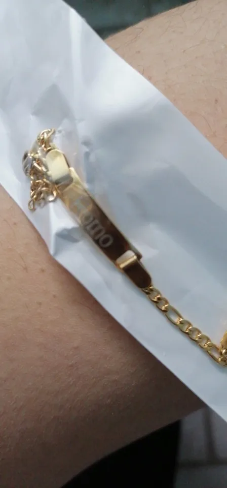 Товар получен в указанное время. Закажите, как я задал правильный шрифт и правильные узоры на каждой стороне имени и даты на задней части браслета. Идеально. Спасибо продавцу.