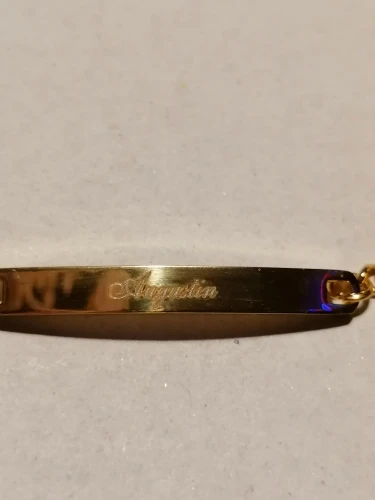 Красивый браслет. Очень тонкая и гравировка идеальна. Хорошее качество. Из-за пандемии было время на таможне. Я рекомендую его и продавцу.