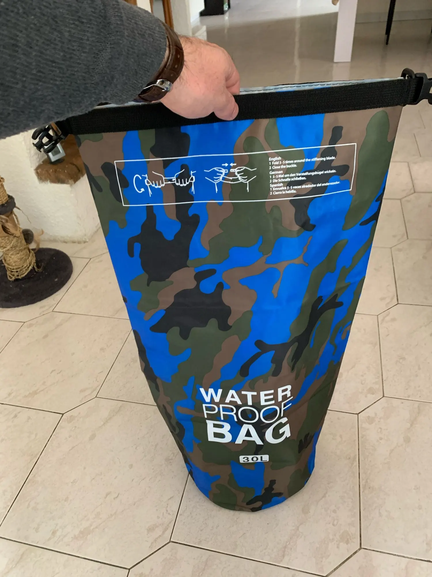 Товар соответствует описанию. Заказывал по "PLUS", в Самару пришел за 15 дней. У меня уже есть опыт использования подобных сумок, удобно оставить что-то сухим, когда вокруг мокро или наоборот ... Для новичков совет: не кладите ничего тяжелого в сумку если собираетесь пользоваться ремнем (максим 3 кг, далее не выдерживает место крепления).