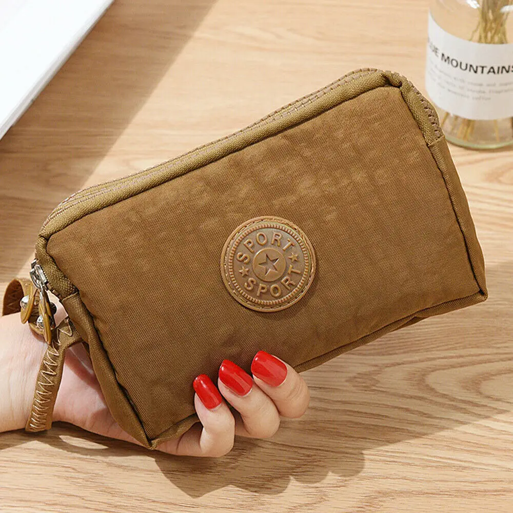 Новинки для женщин, 3 однотонных Слои холст портмоне бумажник с зас...