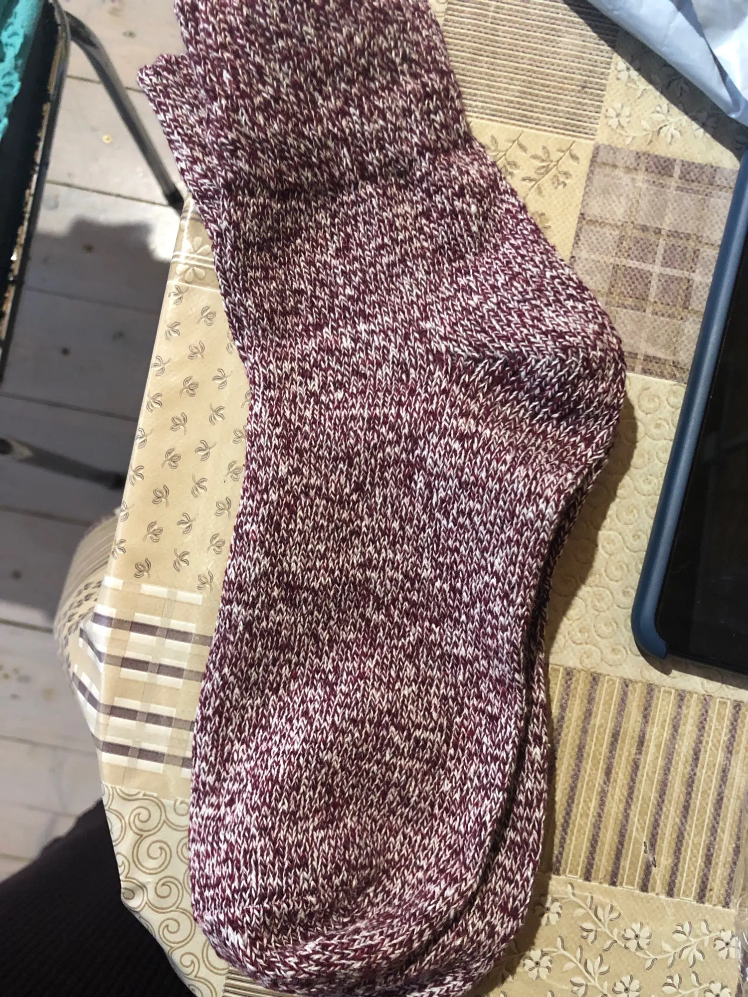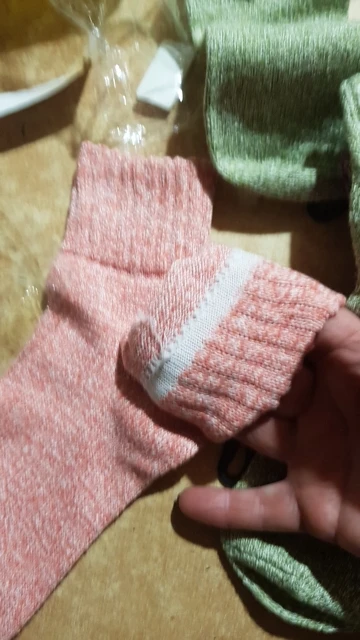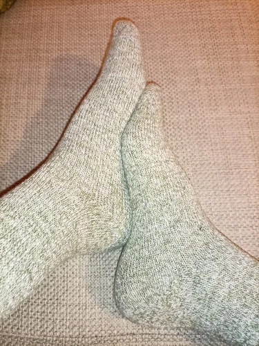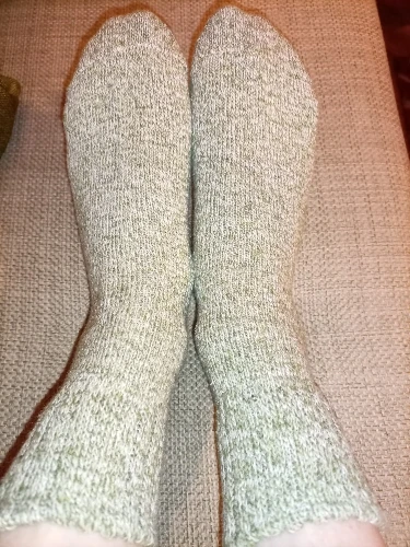 получила носки. резинка ооочень жёсткая, распустила, оверлочила, стало можно носить. если кому всё равно что давит, носки хорошие.