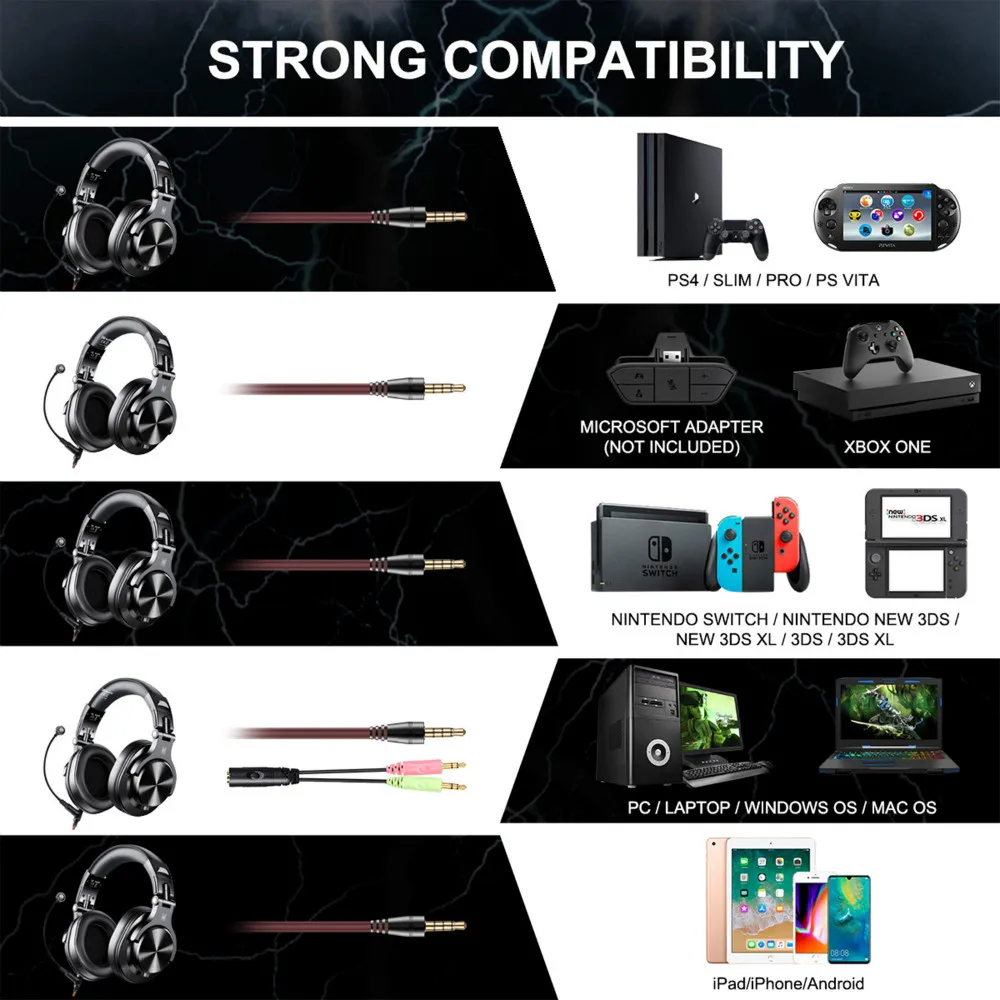 Oneodio A71 игровая гарнитура, студийные диджейские наушники, стерео, накладные, проводные наушники с микрофоном для ПК, PS4, Xbox One, геймеров