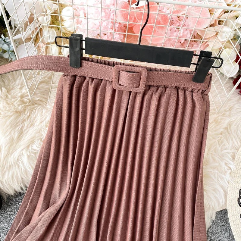 Юбка женская шифоновая средней длины с завышенной талией и поясом