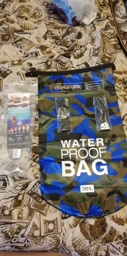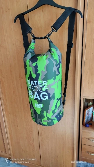 Отличная герма - воду держит, лямки только длинноваты для меня :) цвет не такой яркий, как на фото - зеленый именно камуфляж. Доставка быстрая - в Днепр меньше 3 недель. Покупкой довольна!