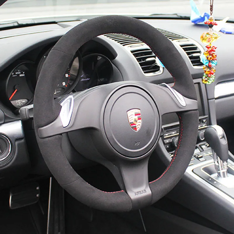 Чехол для руля из черной замши и кожи, чехол для руля Porsche Cayenne Panamera 2010 2011 2012