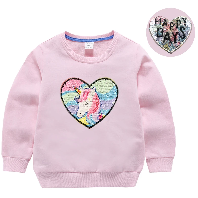 Толстовки с блестками для девочек детский хлопковый топ, Повседневная футболка с блестками для девочек одежда с длинными рукавами для маленьких девочек на осень-зиму