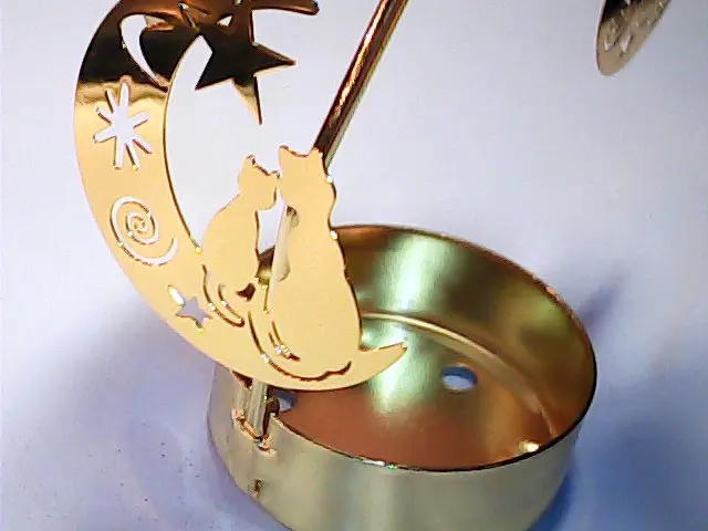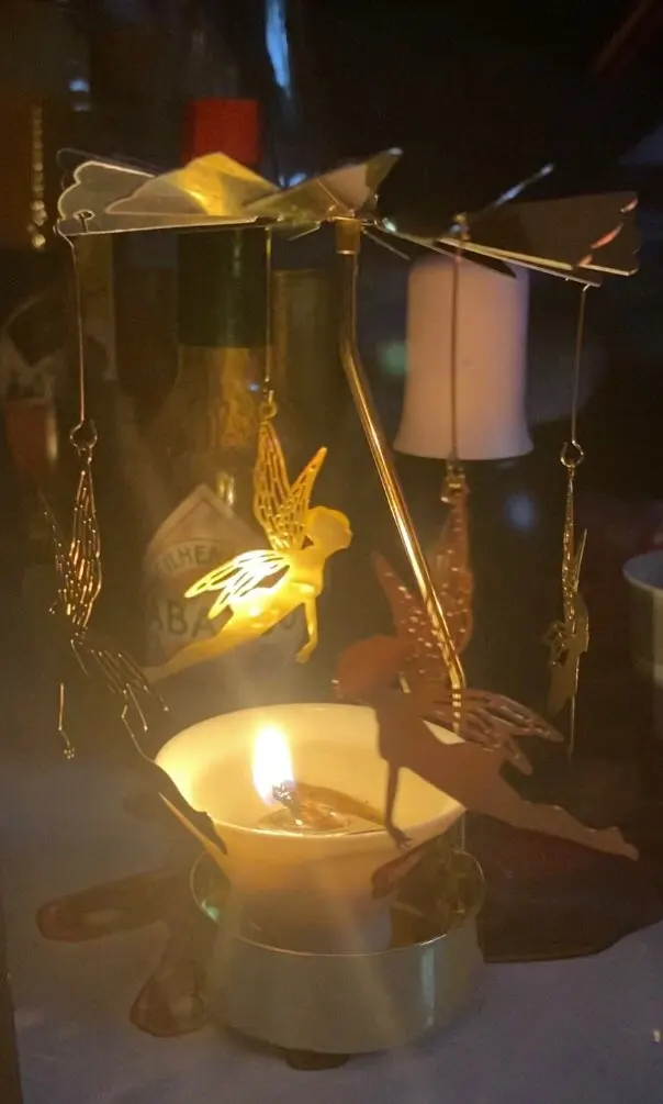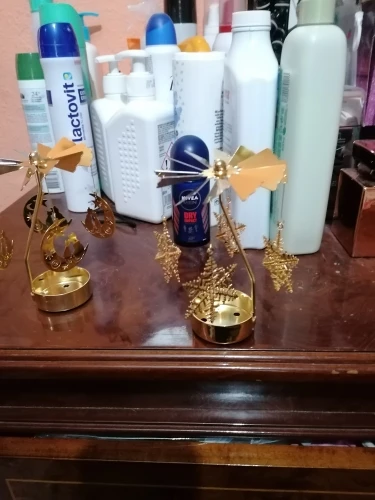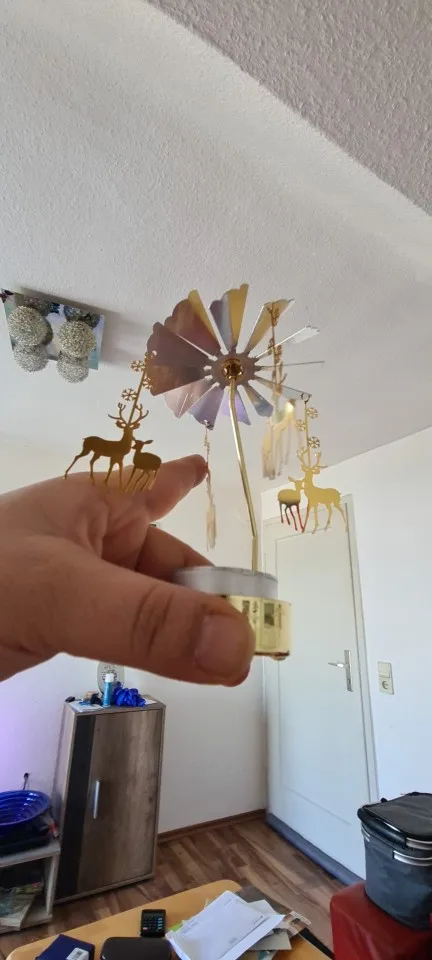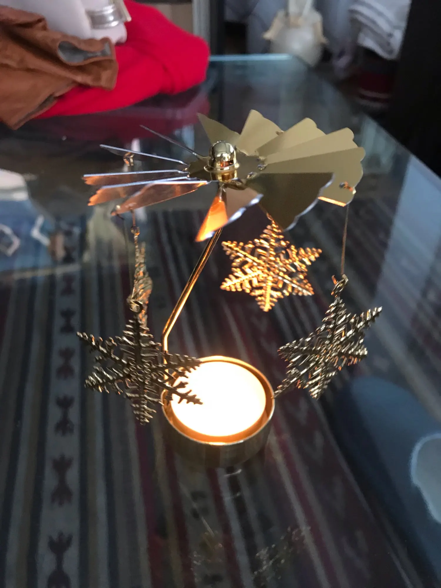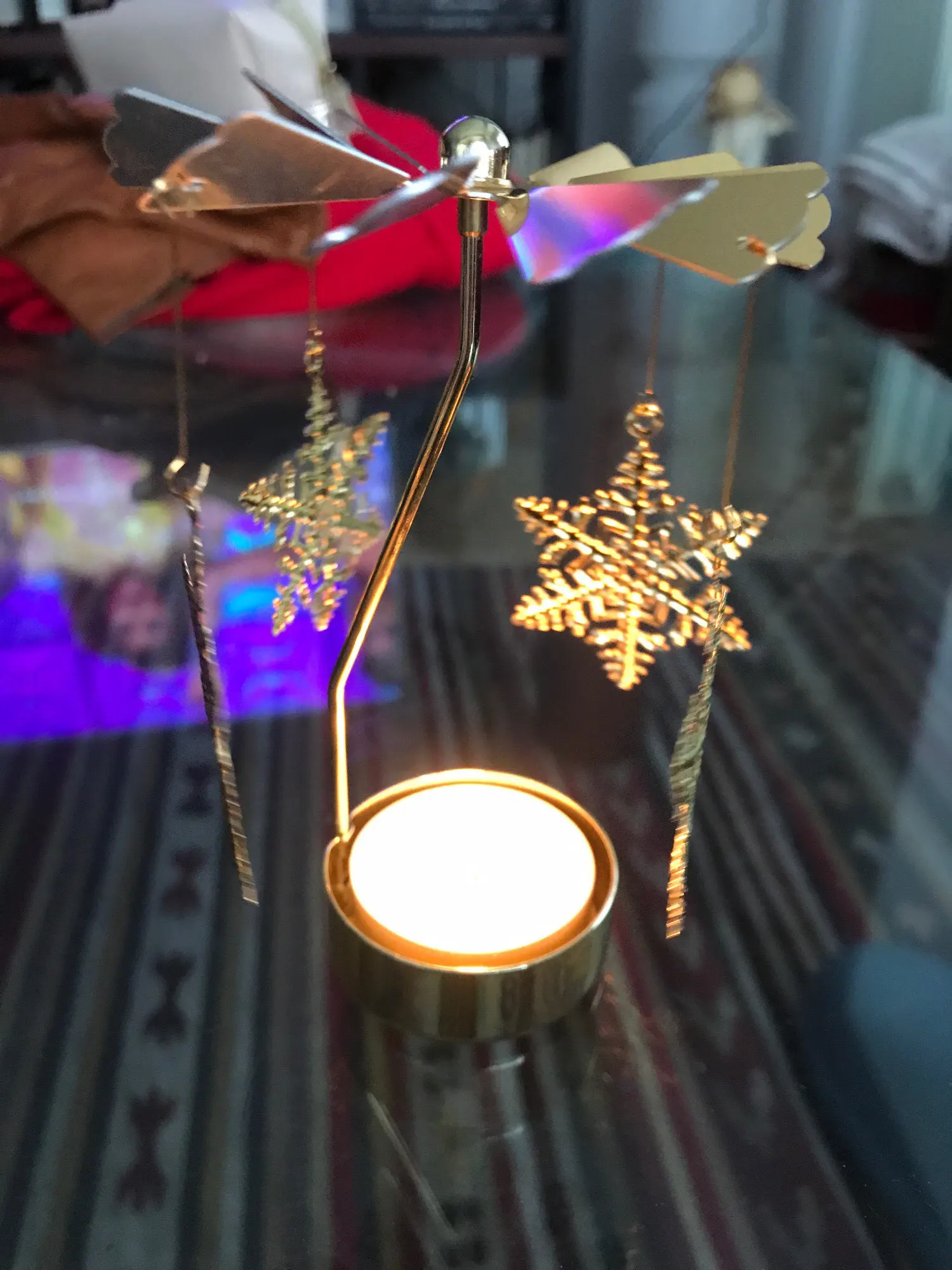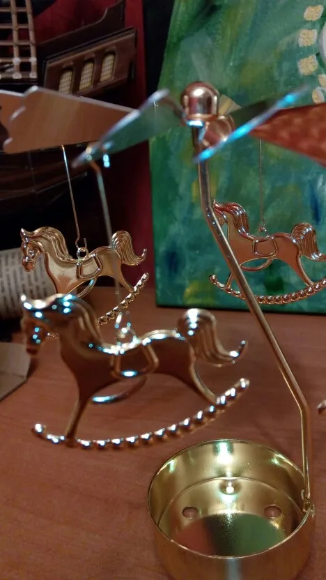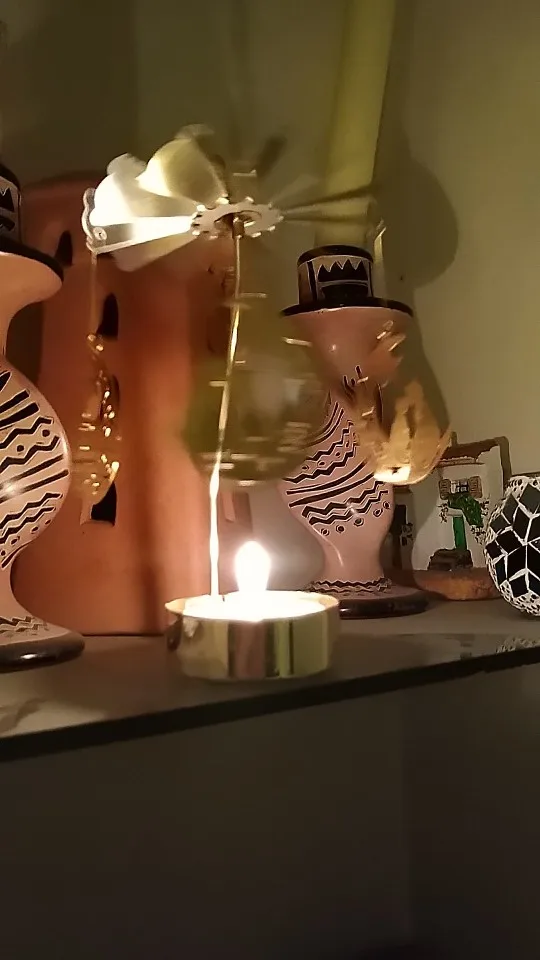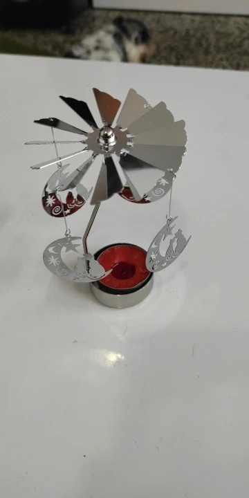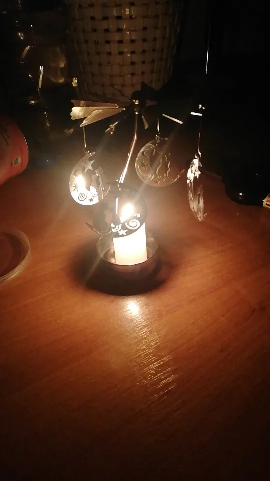 Отличный ретро-подсвечник, только дороговат и маловат - чуть меньше 13 см в высоту, диаметр вертушки - 8 см. У нас был когда-то такой большой, на 4 свечи, стоил копейки. Удовольствие получили, создаёт движущиеся тени на потолке и стенах.