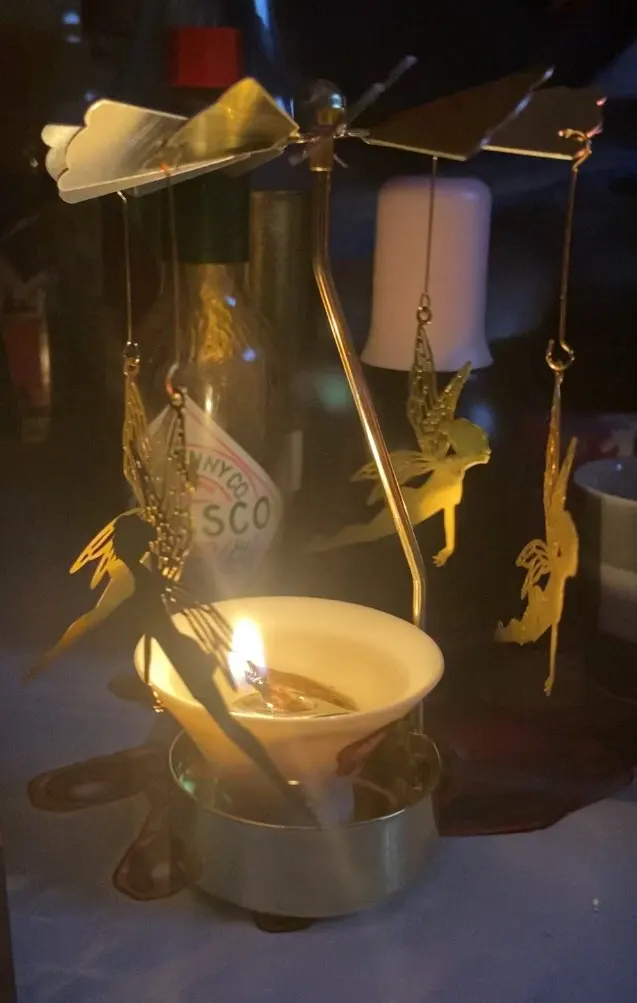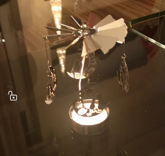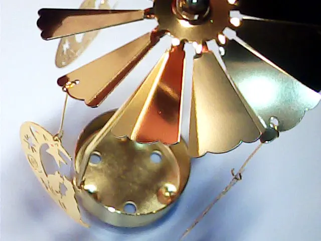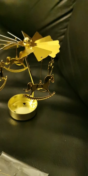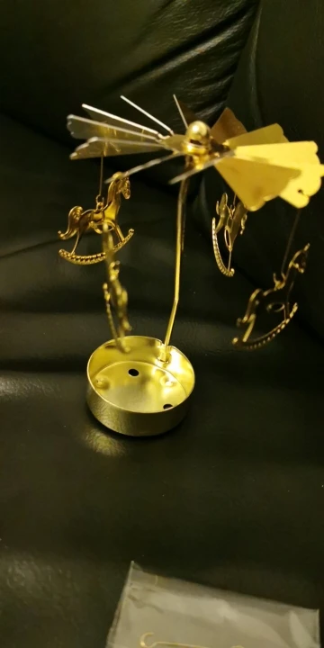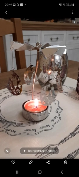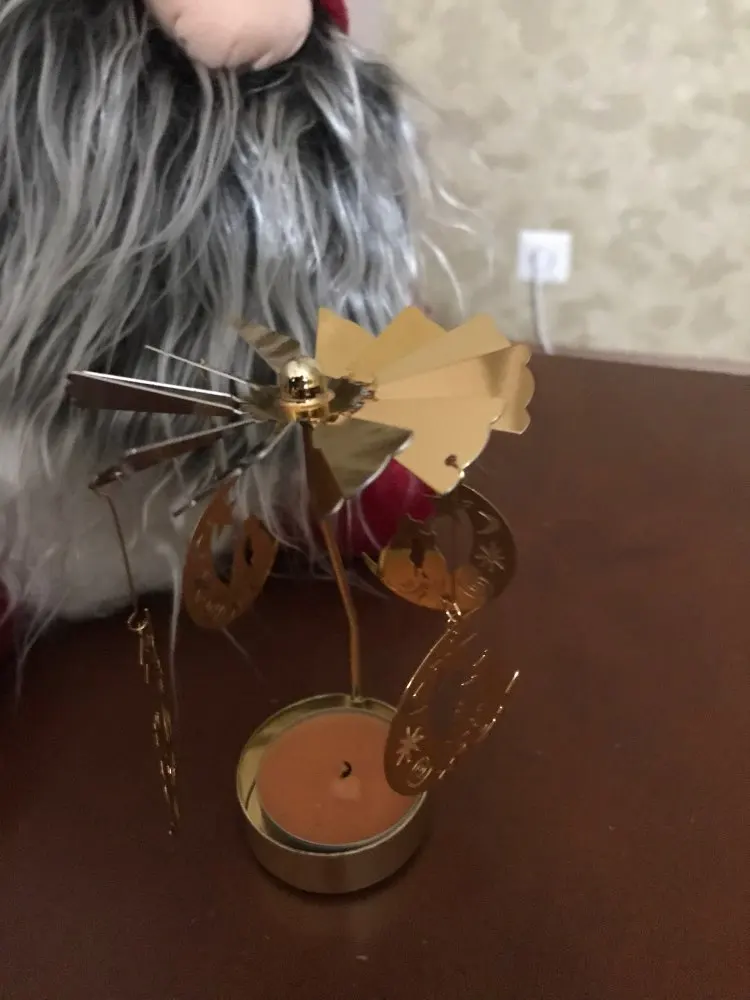 В детстве была ёлочка металлическая, производства Германия, "вечерний звон" называлась, со свечками и похожей крутилкой сверху, но она звенела. К сожалению не сохранилась и не продаются такие сейчас. Жаль, что эта штука не звенит. Подсвечник очень красивый, очень понравился. Рекомендую к покупке. Отправка и доставка очень быстрые.