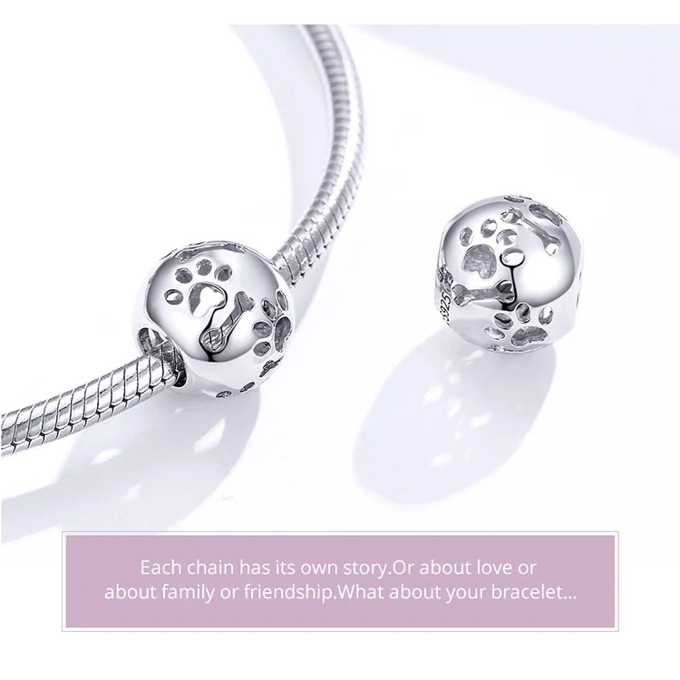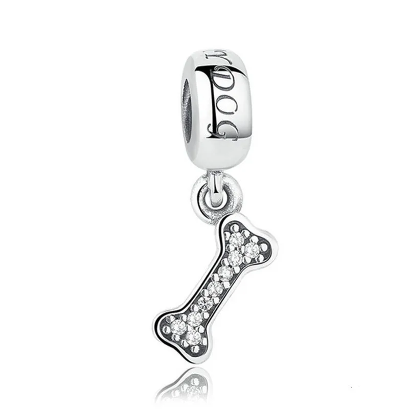 Бусины из серебра браслет в европейском стиле пробы, с фианитами, папайя, в форме собаки
