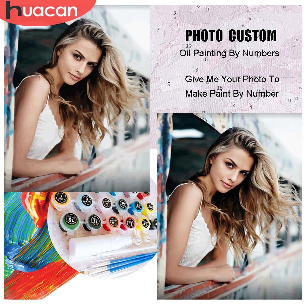 HUACAN фото на заказ картина маслом по номерам картинки Рисование холст раскраска семейный портрет домашнее украшение DIY подарок