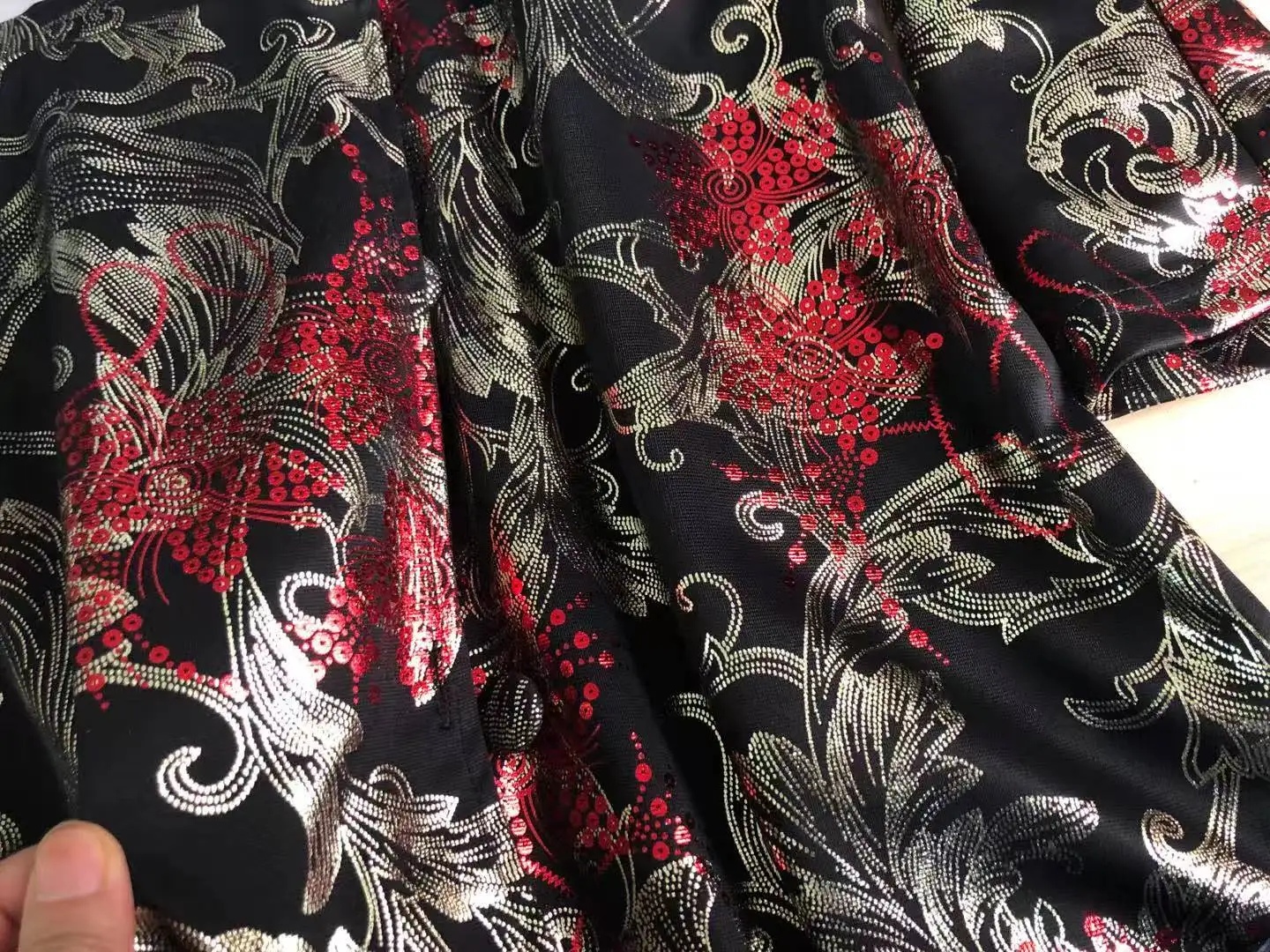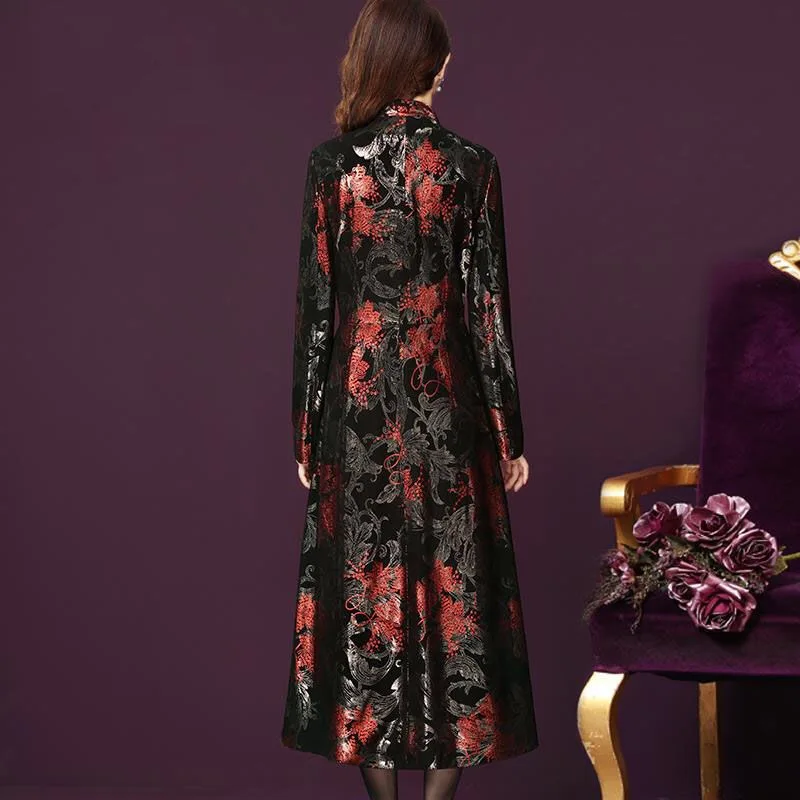 Женский винтажный Тренч с цветочным принтом, красный, золотой, блестящий, длинный, 4xl
