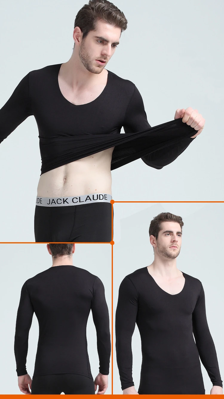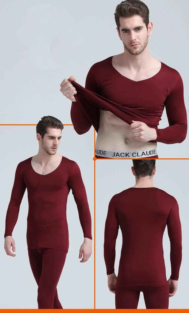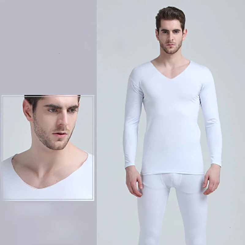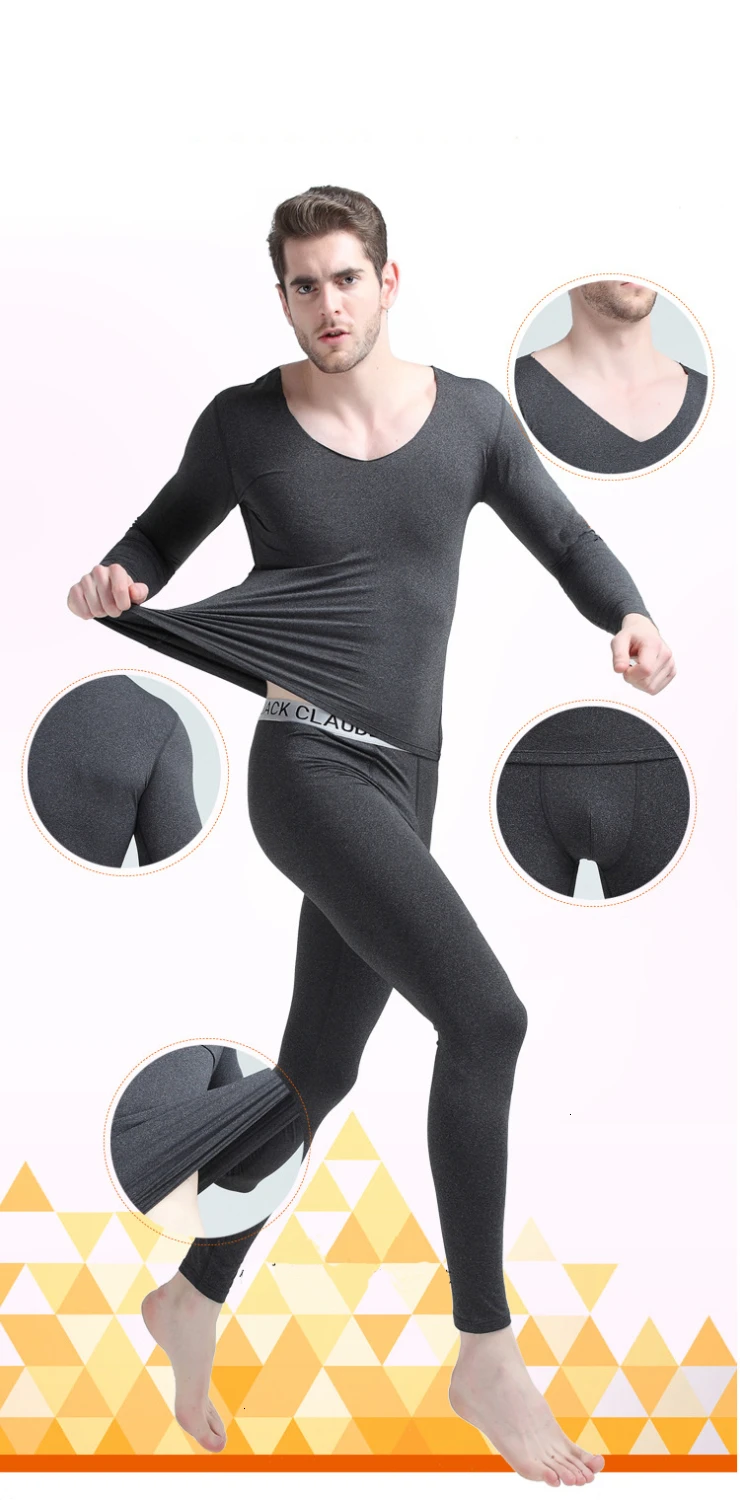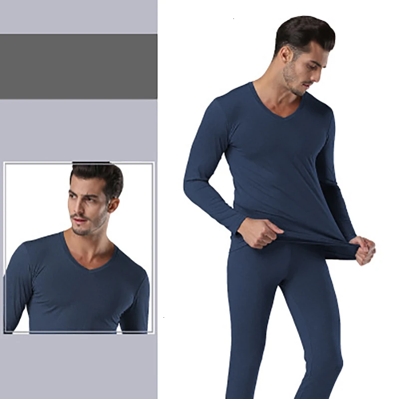 Два Стиль Термальность Мужское нижнее белье 2 шт.компл. мужские зимние Термальность костюм надевать подштанники, теплые, однотонные бесшовные Термальность одежда