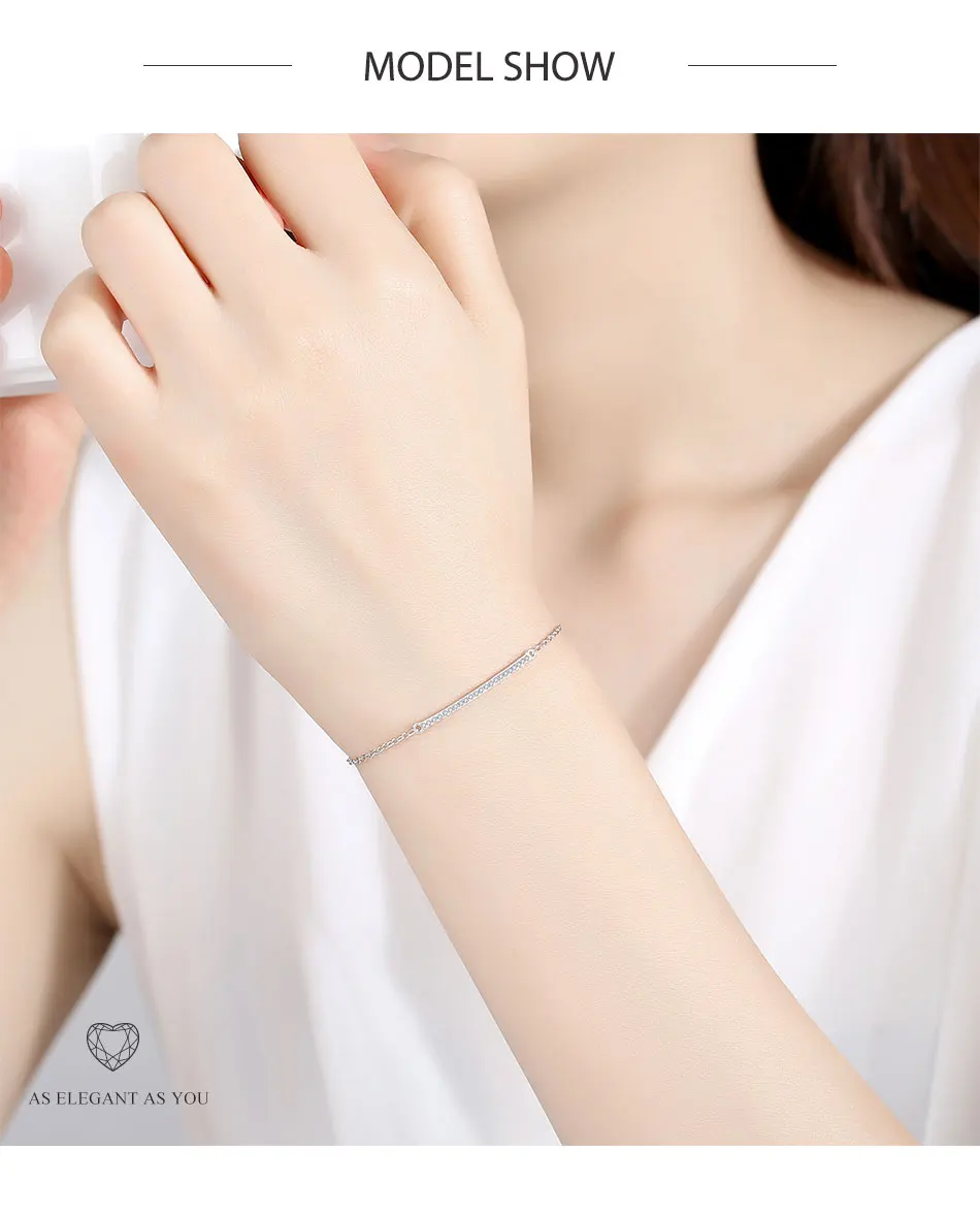 Женский браслет из серебра 100% пробы, с цепочкой и кристаллами