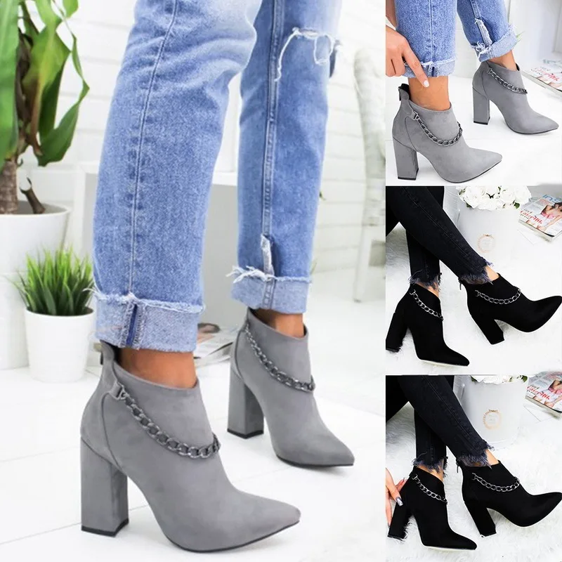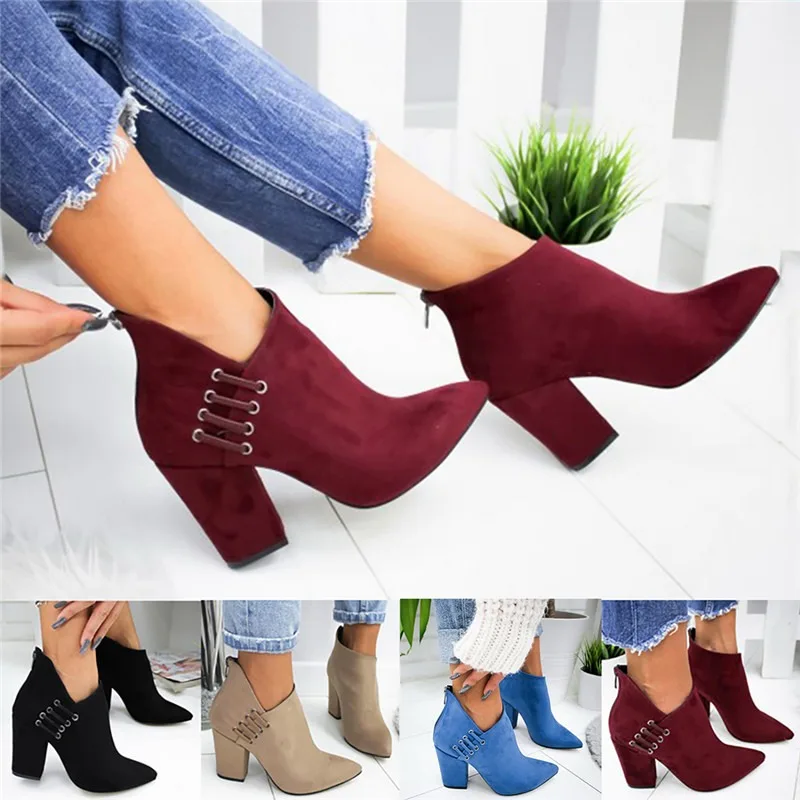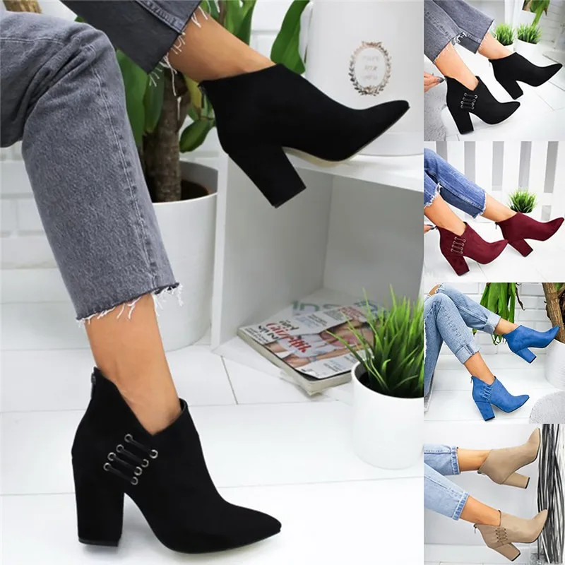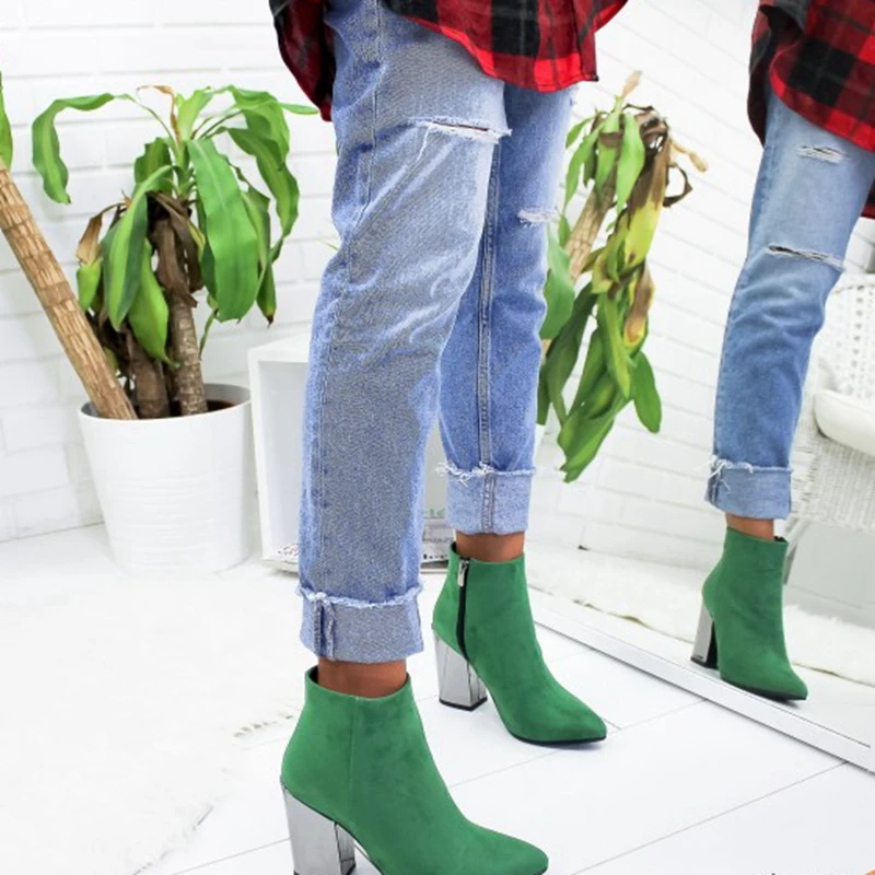 Женские туфли-лодочки Jodimitty из флока с носком однотонные осенне-весенние новые туфли на высоком каблуке Botas Mujer дропшиппинг