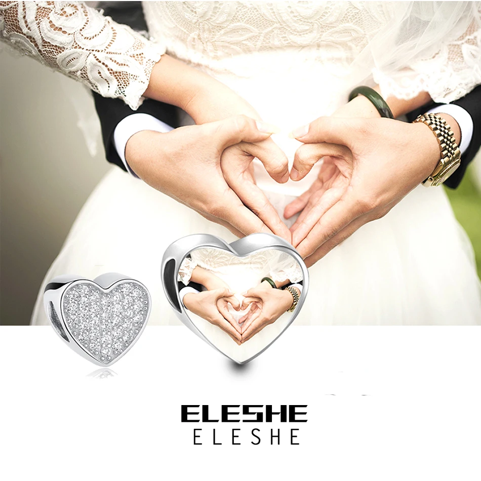 100% Аутентичные бриллиантовые Подвески ELESHE подходят для оригинального браслета, браслета, сделай сам, фото на заказ, бусины в форме сердца, изготовление ювелирных изделий
