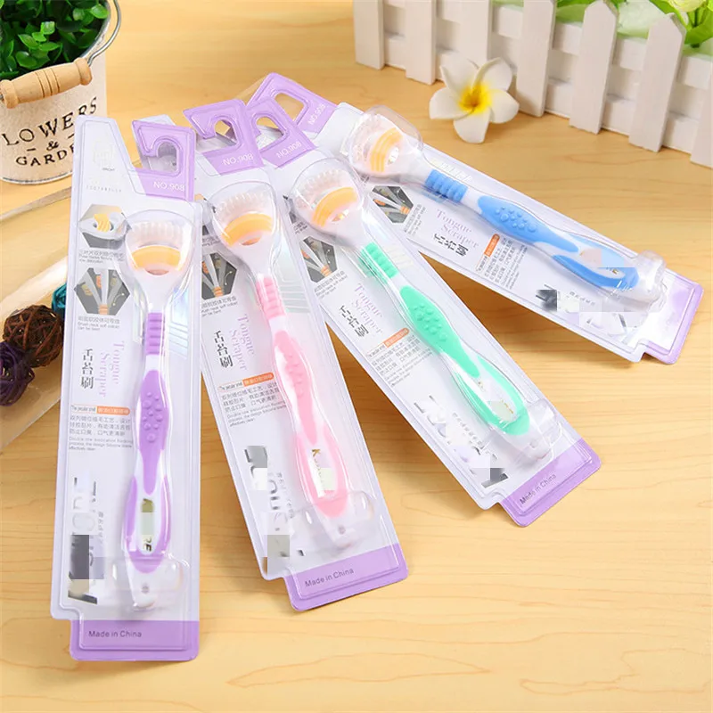 Двухсторонняя щетка для ухода за зубами, скребок для языка, инструмент для очистки дыхания и здоровья для взрослых, разноцветные инструменты для чистки языка