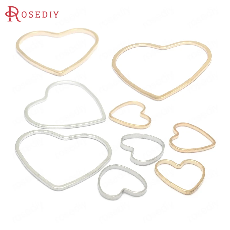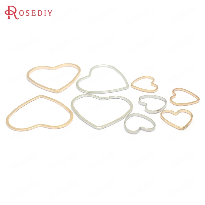 Кольца Закрытые в форме сердца из латуни, 50 шт., 9x9 мм, 13x14 мм, 19x21 мм