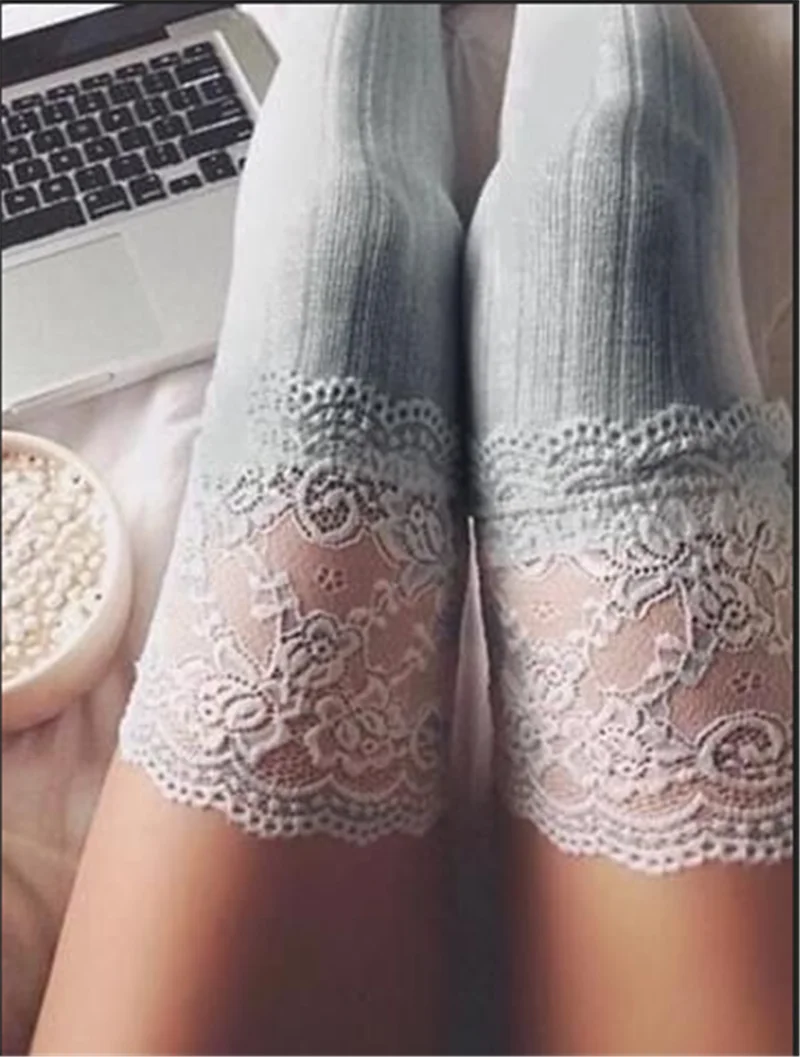 Женские кружевные вязаные хлопковые чулки выше колена, высокие носки, колготки, колготки